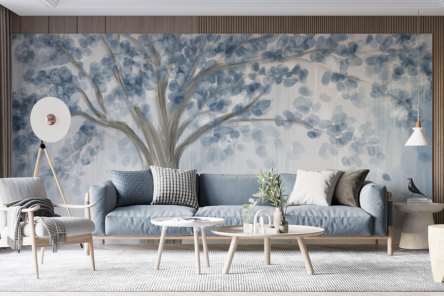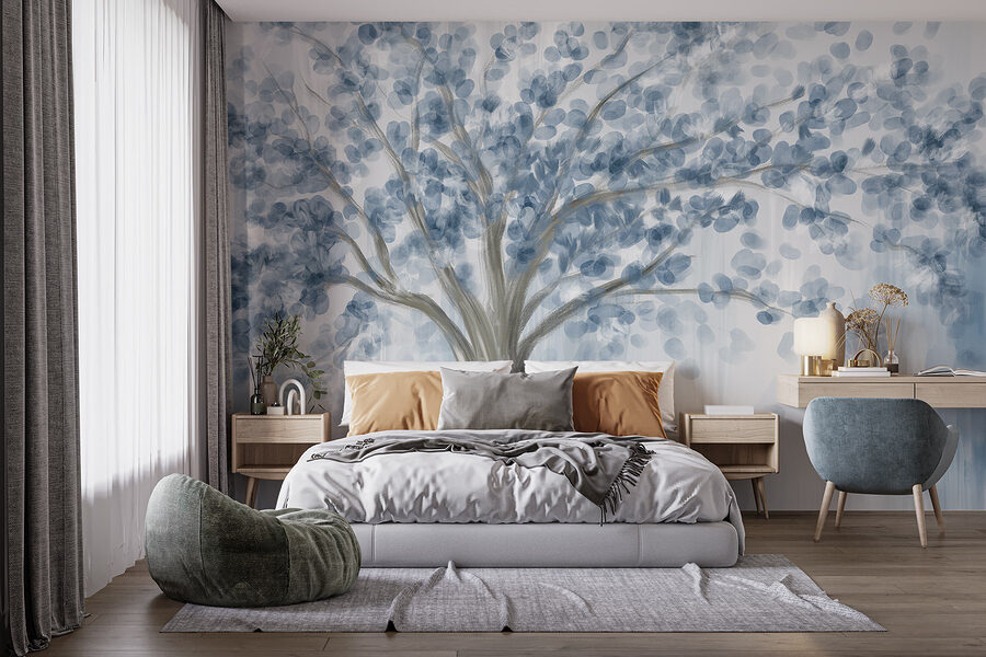 Transformați orice spațiu cu pictura murală încântătoare “Copac cu frunze albastre”. Această piesă uimitoare echilibrează albastrul aerisit și griul moale, evocând un sentiment senin, ca și cum v-ați plimba printr-o pădure liniștită. Imaginați-vă sorbind cafea în timp ce priviți aceste ramuri de vis – puteți simți mirosul de aer proaspăt? Se potrivește fără efort vibrațiilor moderne sau rustice, fiind suficient de versatil pentru un colț confortabil sau o zonă mai vibrantă. În plus, este un starter de conversație perfect, stârnind povești despre natură și aventuri. Aduceți o notă de aer liber în casă și lăsați pereții să respire!