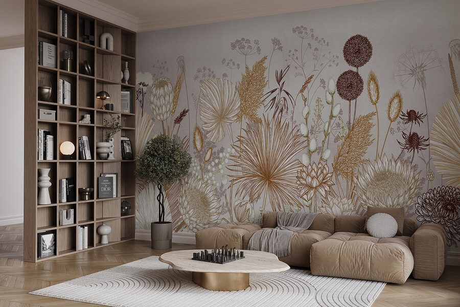 Transformați orice perete într-un paradis înflorit cu acest mural uimitor, “Delicate Floral Artistry on Display”. Imaginați-vă că pășiți într-o grădină luminată de soare, plină de flori schițate cu blândețe, care dansează prin spațiul dvs. Tonurile blânde de pământ creează o atmosferă senină, perfectă pentru un colț liniștit sau chiar pentru acel mic colțișor care abia așteaptă puțină dragoste. Este ca și cum ai aduce natura în casă, fără strănut! Imaginați-vă seri confortabile sorbind ceai, cu aceste flori minunate oferind un fundal dulce. Adăugați o fărâmă de liniște vieții dvs. – pentru că cine nu are nevoie de un pic mai multă putere a florilor?