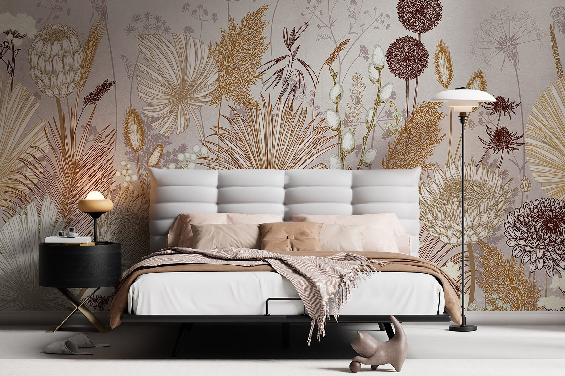 Transformați orice perete într-un paradis înflorit cu acest mural uimitor, “Delicate Floral Artistry on Display”. Imaginați-vă că pășiți într-o grădină luminată de soare, plină de flori schițate cu blândețe, care dansează prin spațiul dvs. Tonurile blânde de pământ creează o atmosferă senină, perfectă pentru un colț liniștit sau chiar pentru acel mic colțișor care abia așteaptă puțină dragoste. Este ca și cum ai aduce natura în casă, fără strănut! Imaginați-vă seri confortabile sorbind ceai, cu aceste flori minunate oferind un fundal dulce. Adăugați o fărâmă de liniște vieții dvs. – pentru că cine nu are nevoie de un pic mai multă putere a florilor?