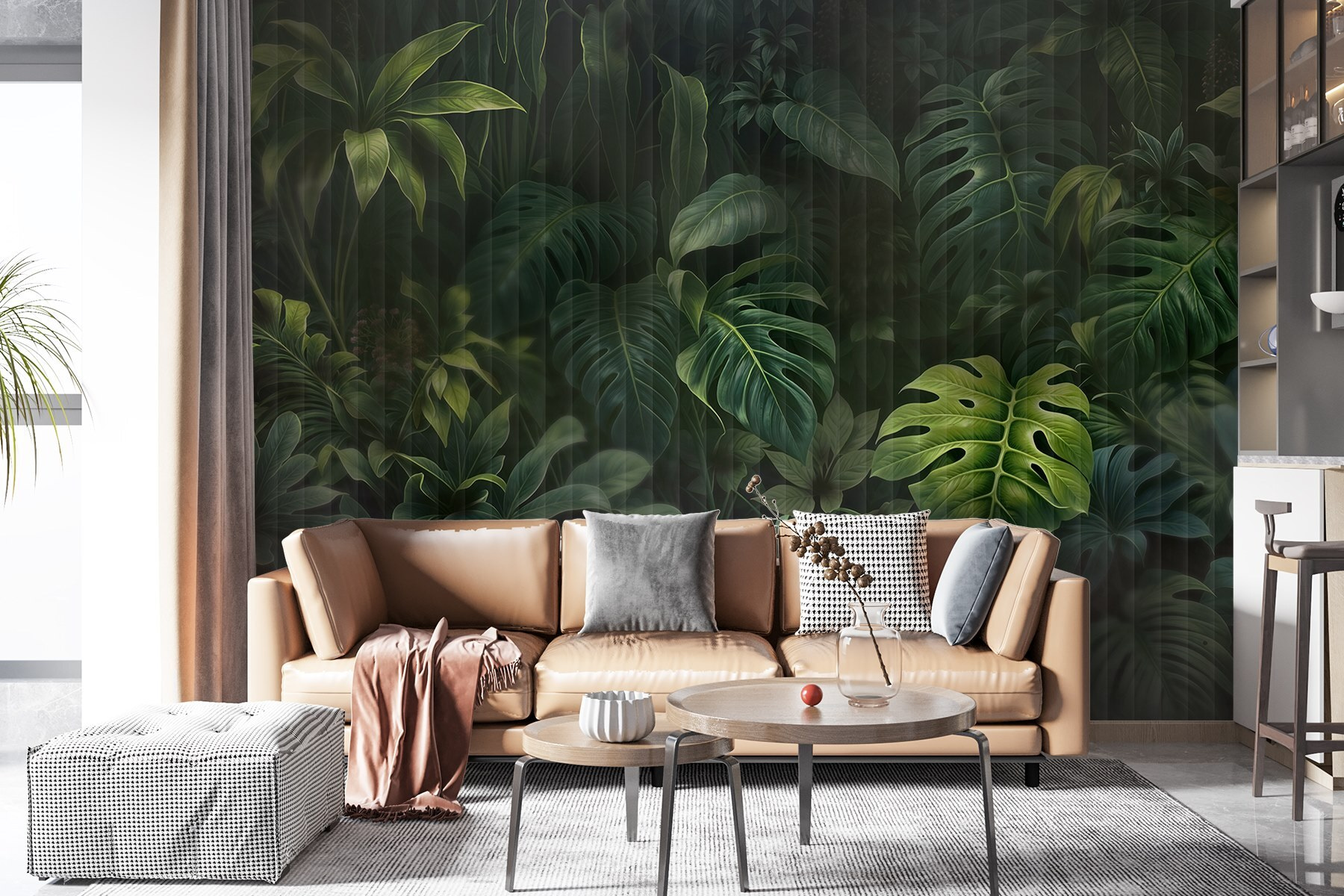 Transformați orice perete plictisitor într-o evadare luxuriantă cu pictura murală “Grup de frunze verzi”. Imaginați-vă că pășiți într-o junglă răcoroasă fără să părăsiți vreodată casa – sună de vis, nu-i așa? Verdele bogat și formele variate ale frunzelor creează o atmosferă confortabilă, perfectă pentru relaxare sau pentru primirea prietenilor. Este ca și cum ai aduce o bucățică de natură în casă. Fie că se află în camera de zi sau în biroul de acasă, această pictură murală stârnește bucurie și face din fiecare privire o mini evadare. Simțiți șoaptele naturii în fiecare zi și cine știe? S-ar putea să începeți să visați la aventuri tropicale.
