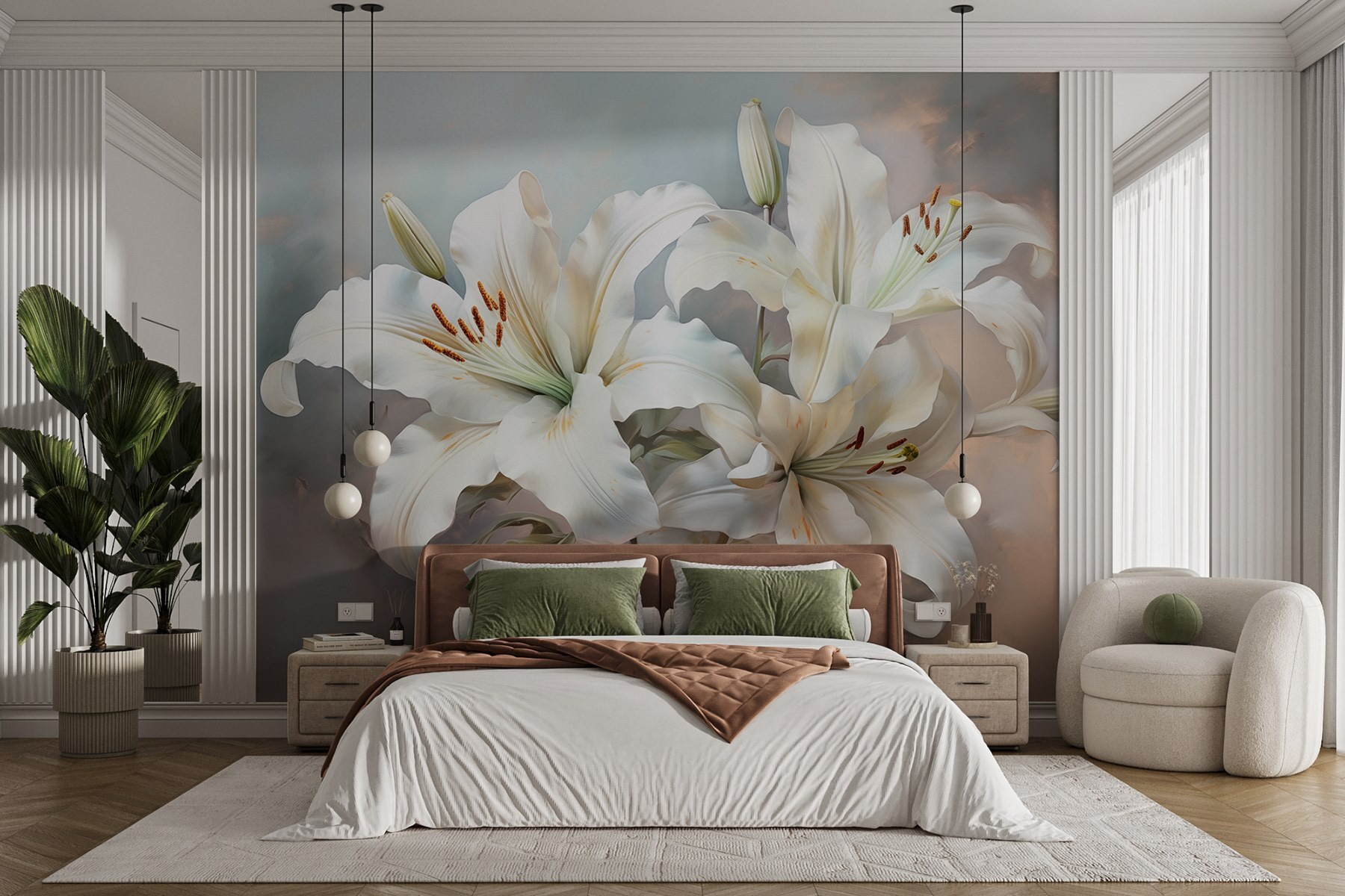 Transformați-vă spațiul într-un refugiu senin cu pictura murală “Crinii delicați în nuanțe blânde”. Imaginați-vă că pășiți într-o cameră în care vă întâmpină crini moi, curgând, șoptindu-vă eleganță. Culorile blânde sunt ca o îmbrățișare confortabilă, perfectă pentru a înveseli acel colțișor în care vă sorbiți cafeaua de dimineață sau vă relaxați după o zi lungă. Toată lumea iubește o poveste bună despre flori, iar acești crini ar putea inspira visuri cu ochii deschiși despre picnicuri de primăvară și după-amieze leneșe. Adăugați această pictură murală și observați cum se schimbă atmosfera – camera pare mai ușoară, mai primitoare. Este ca și cum ai avea o grădină care nu se ofilește niciodată.