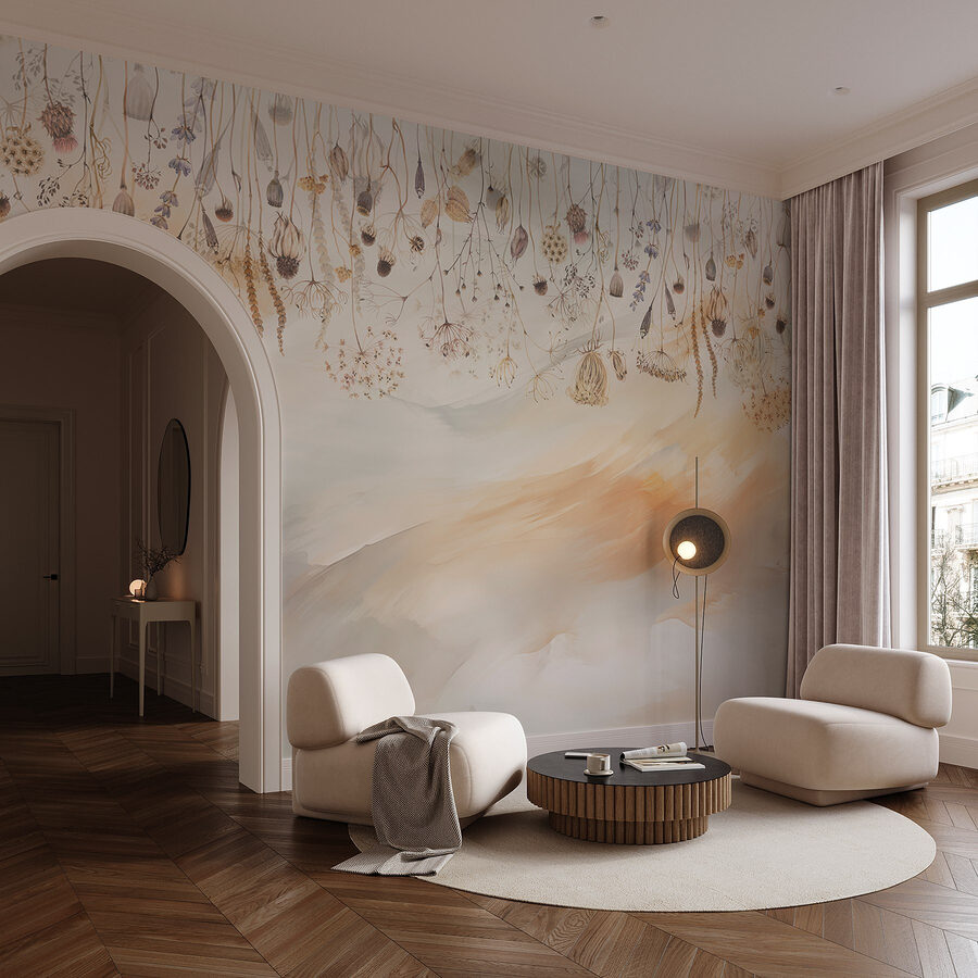 Transformați-vă spațiul cu această pictură murală încântătoare de flori și plante uscate, unde arta întâlnește liniștea. Imaginați-vă că pășiți în fiecare zi într-un refugiu senin; tonurile moi de acuarelă vă învăluie pereții, creând un fundal pașnic care șoptește despre frumusețea naturii. Perfectă pentru un colț de lectură confortabil sau un spațiu de lucru inspirat, această pictură murală invită la visare cu ochii deschiși și la conversații blânde. Este ca și cum ai avea o grădină secretă chiar în casa ta, cu flori care nu se ofilesc niciodată. Imaginați-vă cum vă relaxați cu o ceașcă de ceai, absorbiți vibrațiile liniștitoare – minunat, nu-i așa? Lăsați această pictură murală să își împletească magia în viața dvs.