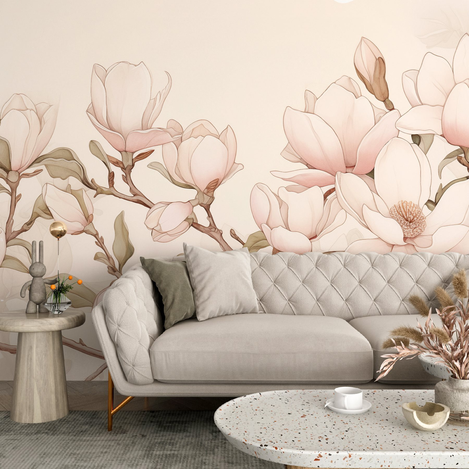 Imaginați-vă că intrați într-o cameră și sunteți întâmpinați de o pictură murală uimitoare cu flori delicate care înfloresc pe o ramură grațioasă. Această “Pictură murală de perete cu flori pe o ramură” nu este doar decor – este ca și cum ați aduce o bucată de natură senină în interior. Stilul moale de acuarelă șoptește eleganță, în timp ce acele petale roz blând invită la căldură și calm. Imaginați-vă sorbind cafeaua de dimineață, privind această frumusețe și simțindu-vă puțin mai relaxat, ca și cum v-ați împrietenit cu o grădină confortabilă. Este un mod minunat de a înveseli spațiile – nu este nevoie de degetul mare verde! Lăsați această pictură murală să fie doza dvs. zilnică de fericire florală.