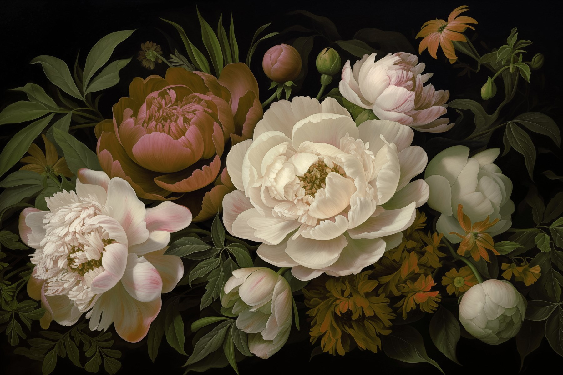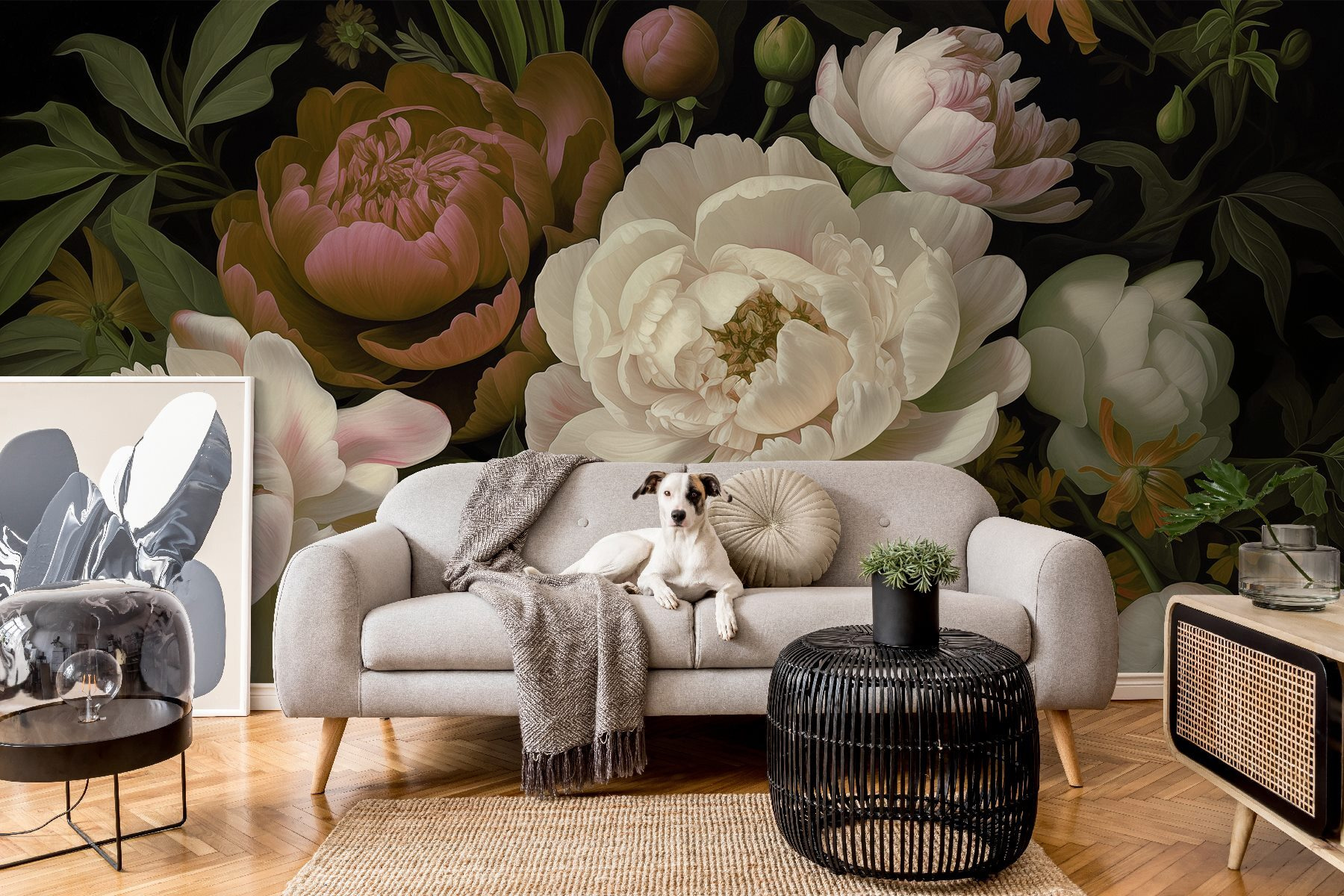 Transformați-vă spațiul cu această pictură murală uimitoare cu un grup vibrant de flori pe un fundal negru bogat. Imaginați-vă că intrați într-o cameră în care bujori, trandafiri și boboci încântători înfloresc chiar în fața ochilor dumneavoastră. Această pictură murală nu adaugă doar culoare, ci spune o poveste, la fel ca acele mari și confortabile reuniuni de familie în care râsetele umplu aerul. Cu fiecare privire, s-ar putea chiar să simțiți petalele moi sau să prindeți o picătură din parfumul dulce al primăverii. Este atingerea perfectă pentru un colț de lectură confortabil sau o intrare primitoare. Cine nu și-ar dori o grădină care să nu dispară niciodată acasă?