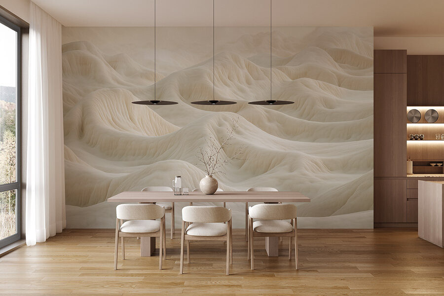 Transformați-vă spațiul într-un tărâm senin al minunilor de iarnă cu această pictură murală uimitoare care prezintă o întindere montană acoperită de zăpadă. Imaginați-vă că vă treziți în nuanțe moi și senine de alb care surprind liniștea naturii. Este ca și cum ați aduce liniștea unei dimineți geroase în interior – un fundal perfect pentru serile confortabile cu o ceașcă fierbinte de cacao. Imaginați-vă prietenii intrând, cu ochii măriți de încântare la această piesă unică, stârnind conversații despre aventurile din vârful muntelui. Fie că este vorba de un dormitor sau de o cameră de zi plină de viață, această pictură murală învăluie fără efort spațiul în liniște, făcându-l cu adevărat primitor.