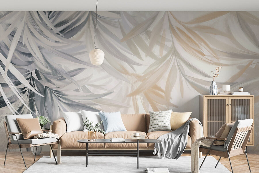 Transform any room with the “Delicate Leaves in Soft Hues” mural – it’s like a breath of fresh air for your walls! Imagine walking into your space and feeling instantly calmed by those soft, leafy designs, dancing gracefully in pastel shades. It’s perfect for anyone who wants an easy escape from the chaos of everyday life.