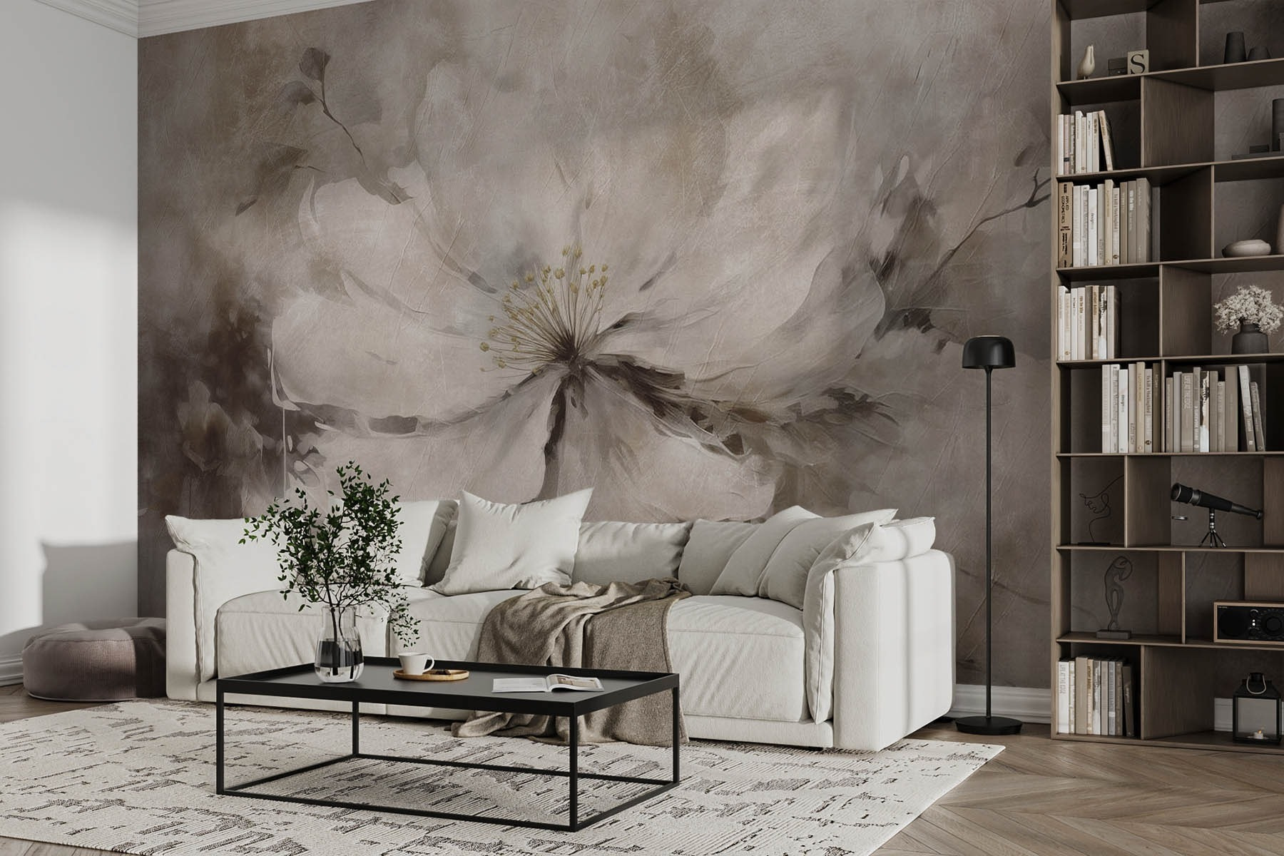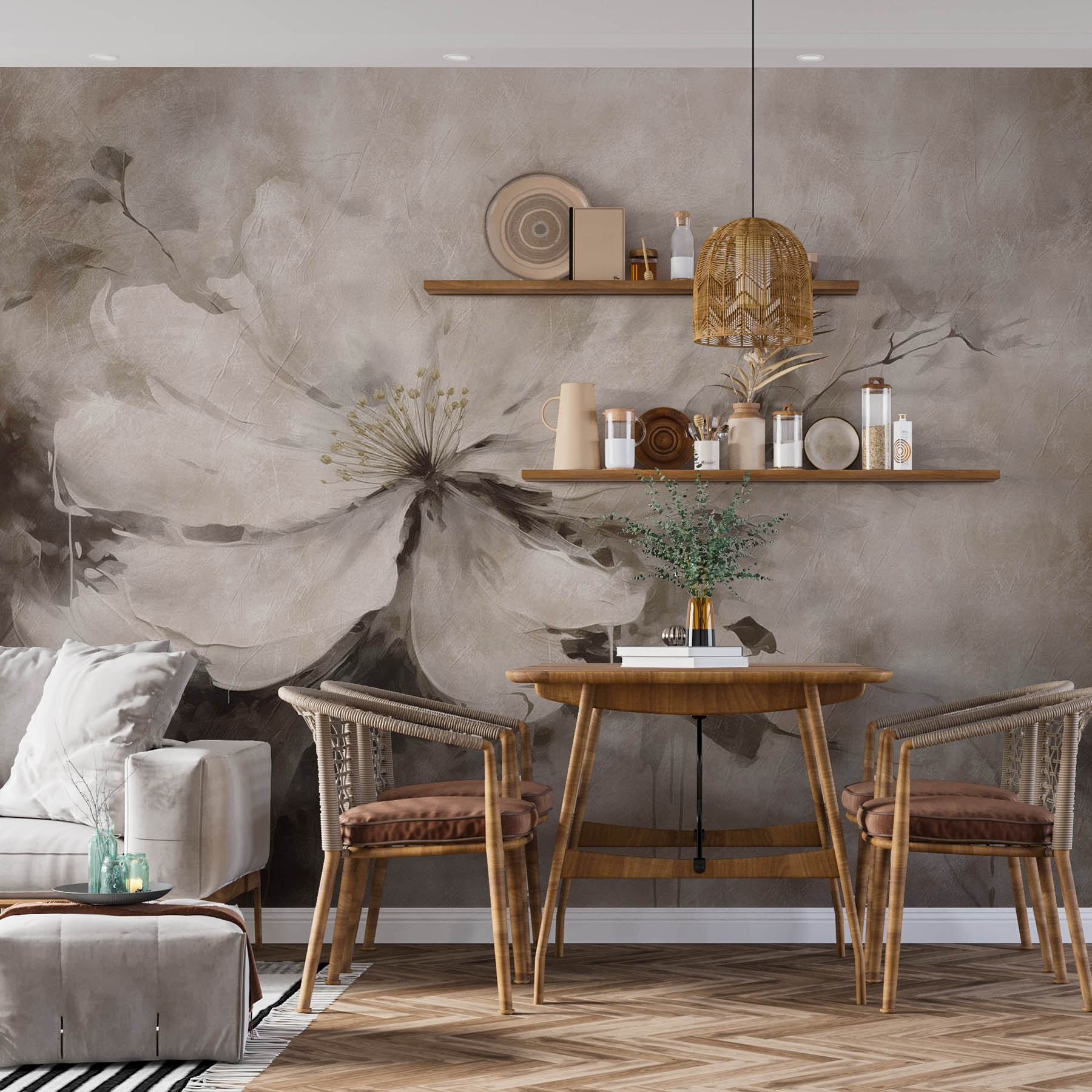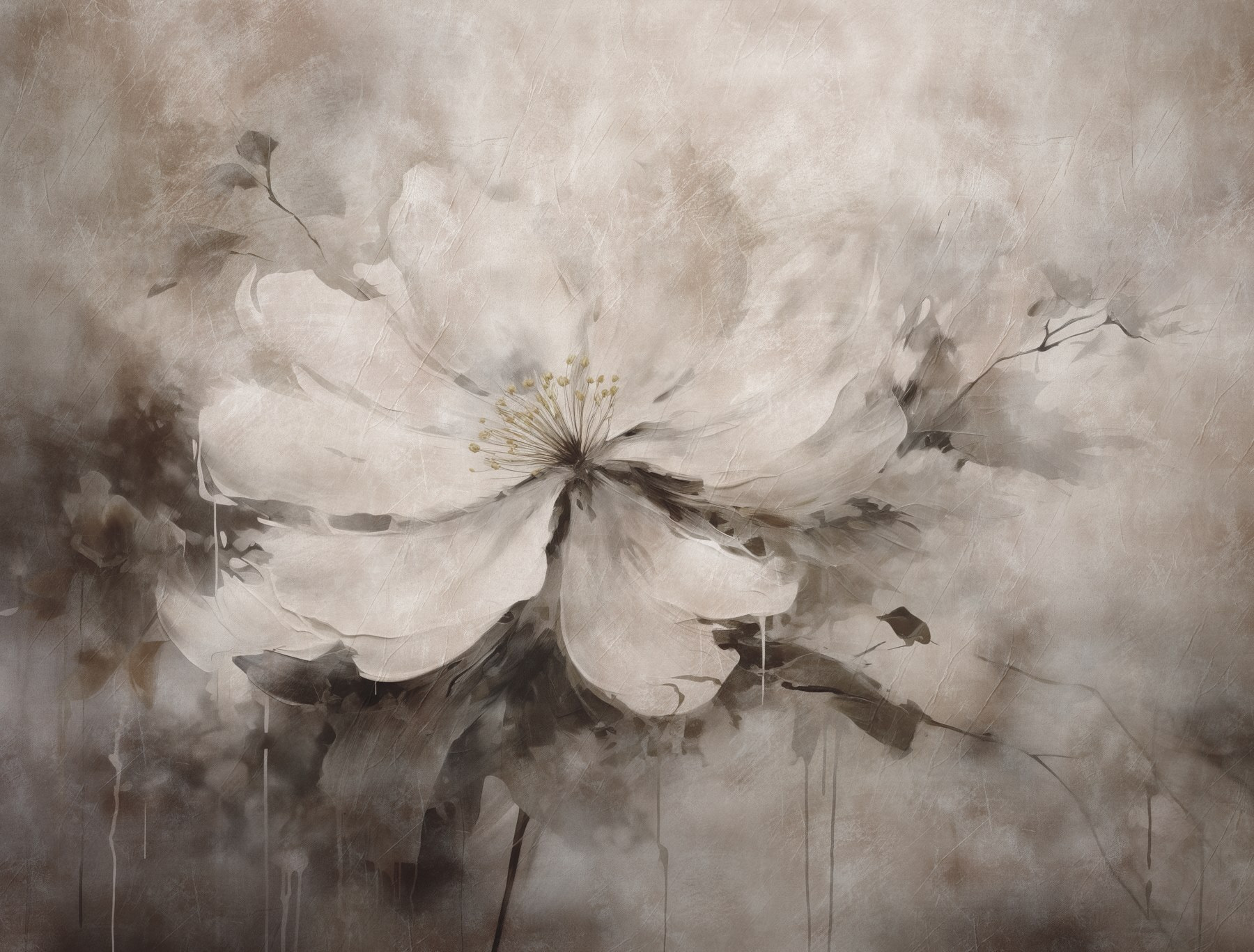 Imaginați-vă că intrați într-o cameră care pare o grădină confortabilă, fără a avea nevoie de stropitoare sau insecte enervante. Acest tapet uimitor, care prezintă o floare albă delicată, face exact acest lucru. Acesta îmbină cu grație tonuri suave cu o notă artistică aproape onirică. Imaginați-vă: o ceașcă de ceai cald în mână, în timp ce admirați această frumusețe, lăsând grijile să se risipească ca petalele în adierea vântului.