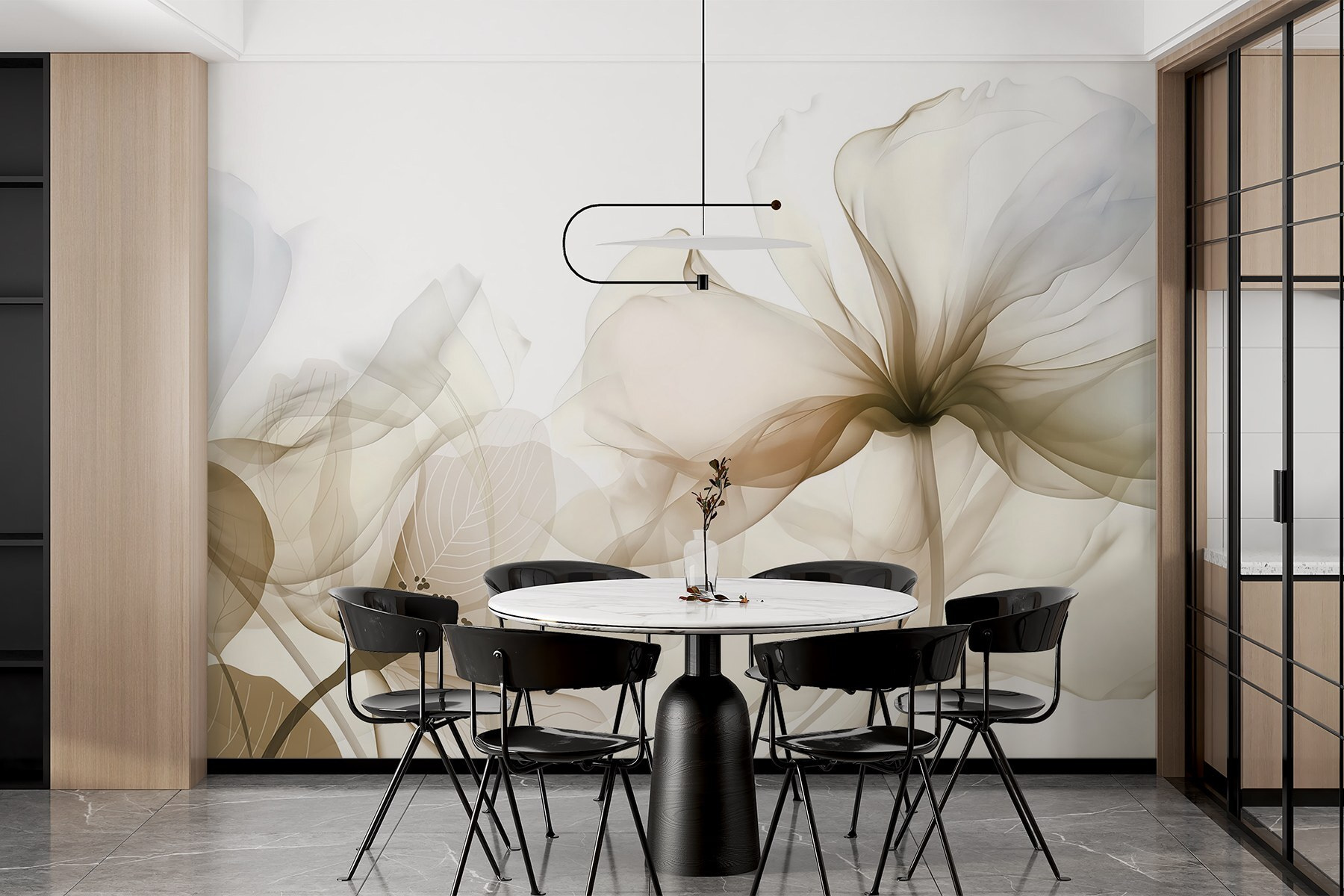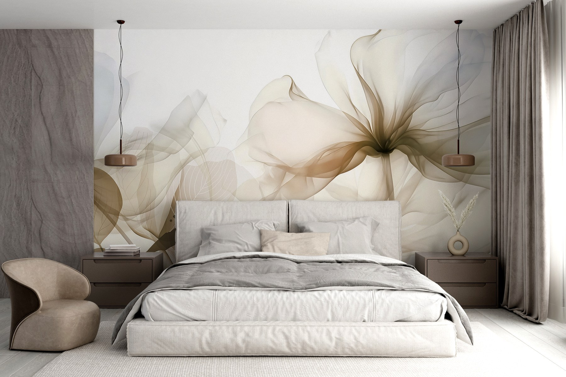 Imaginați-vă că pășiți într-un spațiu care pare o galerie de artă – asta este ceea ce oferă acest mural! „Delicate Hues of Nature’s Beauty” surprinde eleganța delicată a florilor, ca o șoaptă blândă din partea naturii însăși. Este ca și cum un pictor ar fi aplicat culori delicate pe perete, invitând pe toată lumea să se oprească și să respire puțin mai adânc.