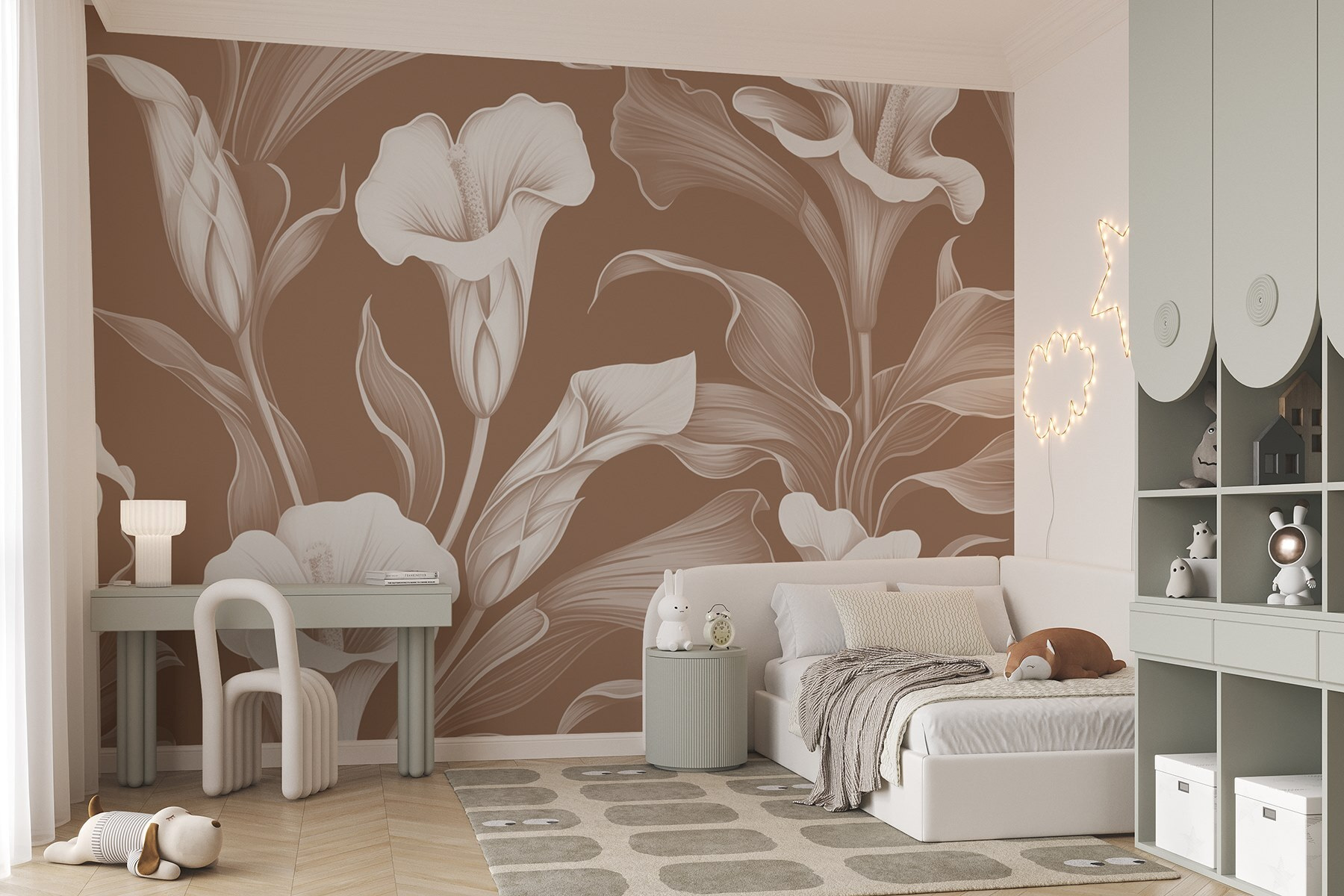 Transformați-vă spațiul într-un refugiu floral liniștit cu acest fototapet Elegant Floral Design. Imaginați-vă că intrați în camera dvs. și, brusc, vă simțiți ca într-o grădină! Tonurile liniștitoare și detaliile delicate creează o atmosferă pașnică, perfectă pentru a vă relaxa cu o carte bună sau pentru a savura o ceașcă de ceai în liniște. Este ca și cum ați aduce natura în interior, fără alergiile asociate. Florile grațioase dansează pe perete, șoptind povești despre zilele de vară și briza ușoară. Perfect pentru orice loc care are nevoie de un strop de farmec natural. La urma urmei, cine nu și-ar dori o oază plină de flori acasă?