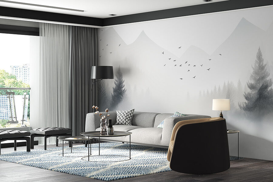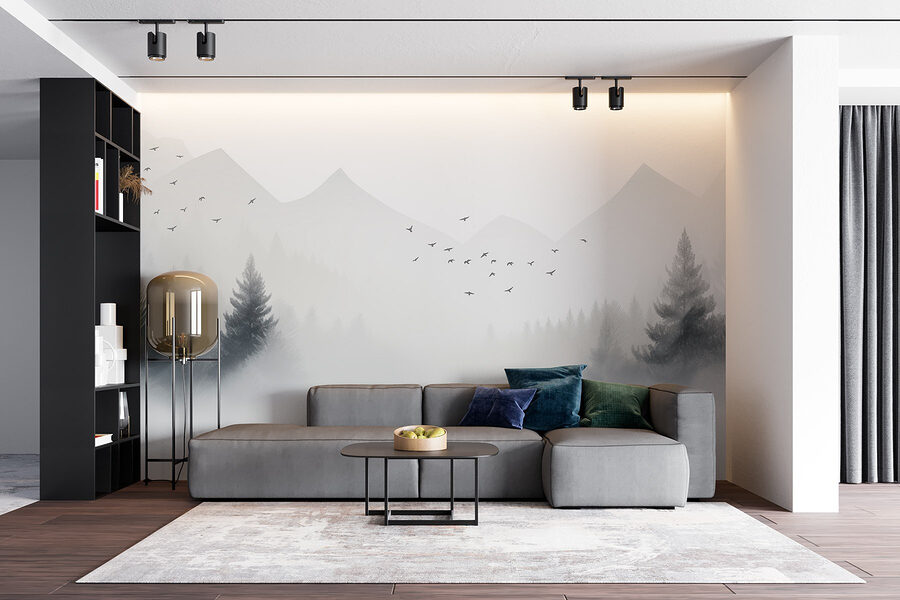 Imaginați-vă că intrați într-o cameră confortabilă, decorată cu „Păsări zburând peste o pădure încețoșată”. Acest mural inspiră liniște, invitând natura în spațiul dvs. Imaginați-vă acele dimineți liniștite, cu razele soarelui care abia se strecoară printre copaci, în timp ce ceața moale acoperă copacii – cu adevărat de vis! Fiecare pasăre în zbor adaugă un strop de libertate, parcă încurajându-vă să vă întindeți și voi aripile. Fie că este vorba de un living sau de un colț liniștit de lectură, acest mural poate transforma atmosfera și poate stârni vise cu ochii deschiși despre poteci în pădure și escapade la munte. Culorile delicate liniștesc privirea, făcând imposibil să nu vă simțiți puțin mai relaxați în fiecare zi. Este ca și cum ați avea o escapadă liniștită pe perete!