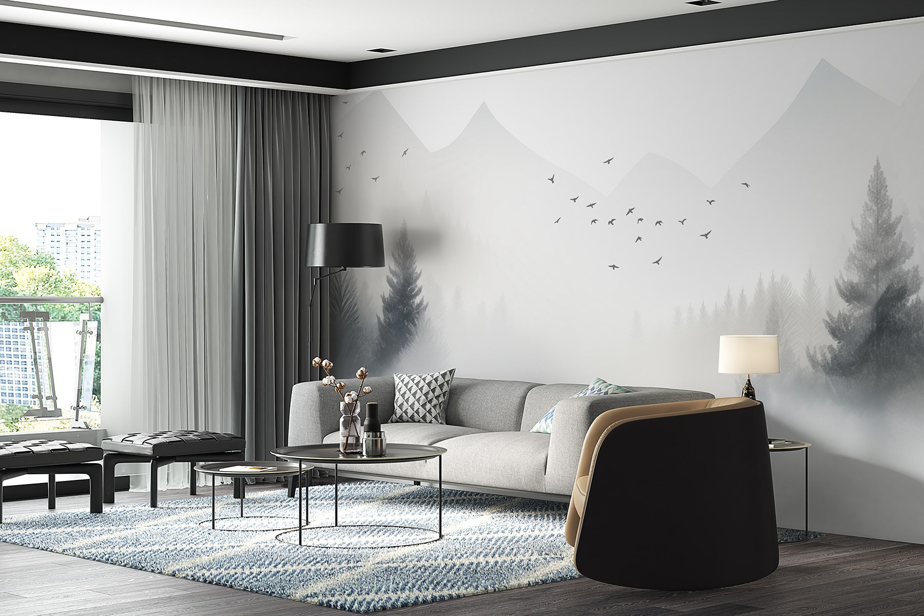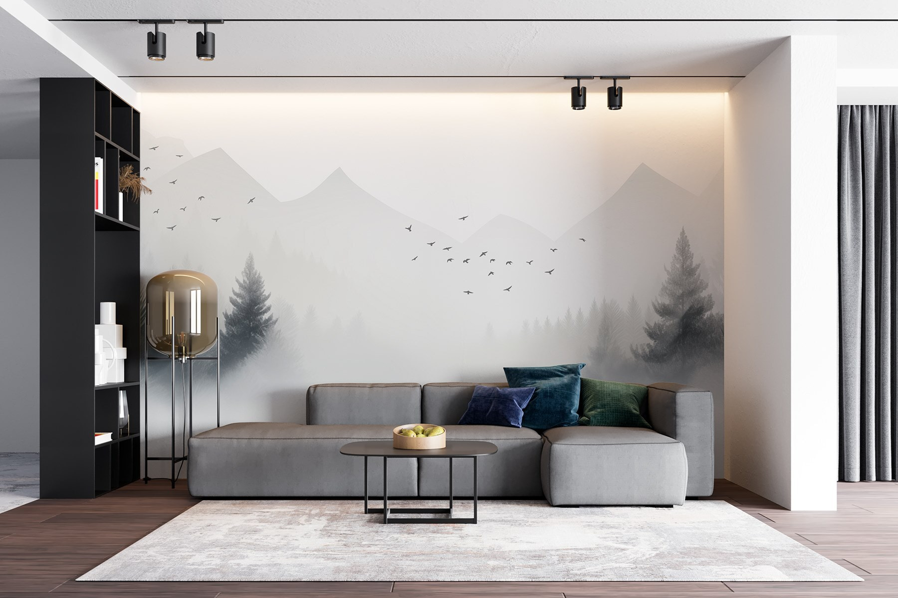 Imagine stepping into a cozy room adorned with “Birds Flying Over a Foggy Forest.” This mural whispers tranquility, inviting a hint of nature right into your space. Picture those serene mornings, sunlight just peeking through, as soft fog blankets the trees—truly dreamy! Each bird in flight adds a touch of freedom, like they’re encouraging you to spread your wings too. Whether it’s a living room or a quiet reading nook, this mural can transform the vibe and spark daydreams of forest trails and mountain escapes. The gentle colors soothe the eyes, making it impossible not to feel a tiny bit more relaxed every day. It’s like having a peaceful getaway on your wall!