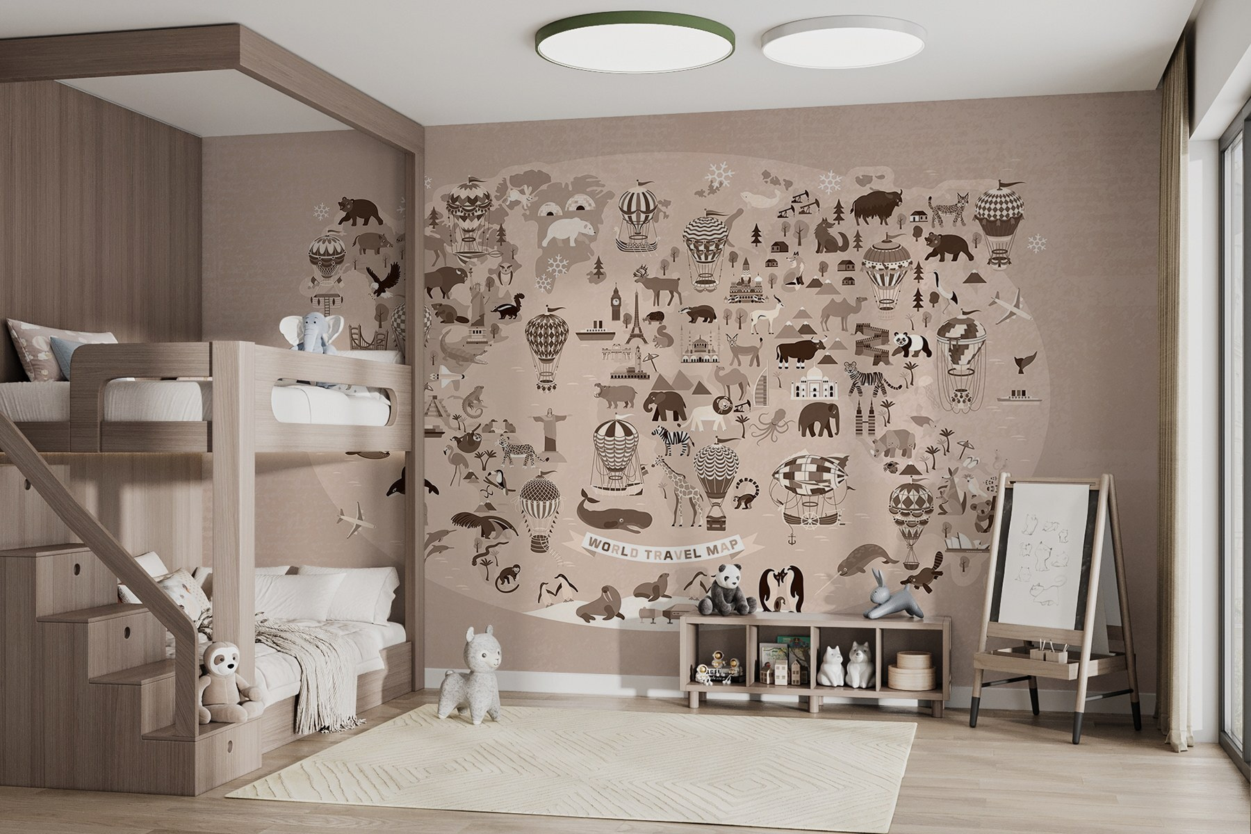 Transformați orice cameră cu acest „Wall Murals Map of the United States” (Tapet cu harta Statelor Unite). Imaginați-vă: culori vibrante, ilustrații jucăușe cu animale iconice și repere celebre, toate reunite într-un tapet vesel. Este ca o mini-vacanță de fiecare dată când cineva trece pe lângă el! Fie că este în camera unui copil sau într-un birou jucăuș, tapetul stimulează creativitatea și conversația. Imaginați-vă oaspeții care se plimbă, arătând locurile lor preferate: „Uite, acolo e Yosemite!” sau „Îmi place ursul acela!” Nu este doar un decor, ci o aventură care așteaptă să se întâmple. Așadar, agățați-l și lăsați pereții să spună o poveste!
