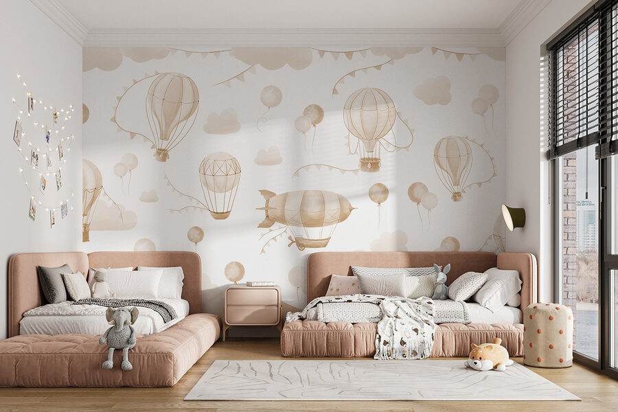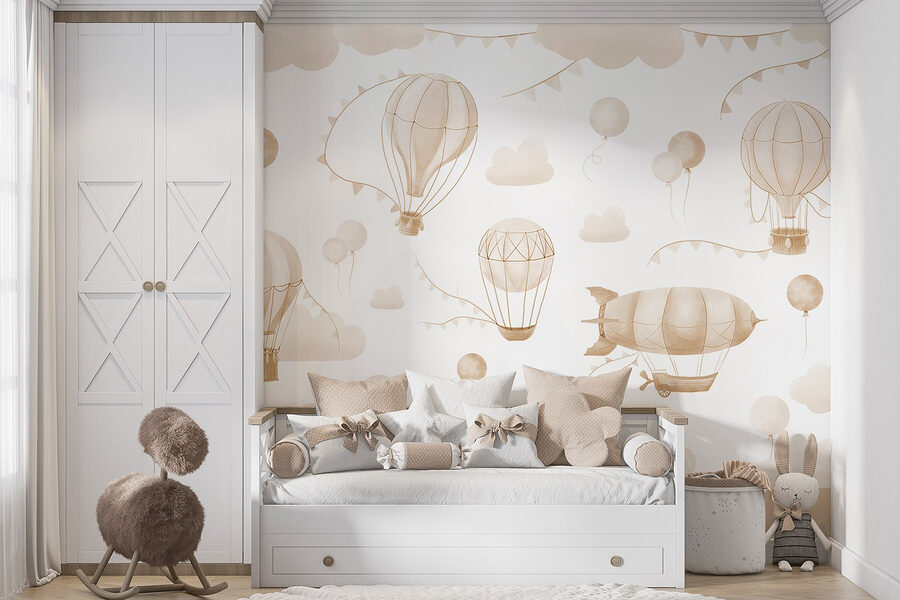 Transformați orice cameră cu această pictură murală capricioasă care prezintă un grup plin de viață de baloane cu aer cald plutind deasupra munților blânzi. Este ca și cum ai aduce o bucată de aventură în interior, unde fiecare privire pare o privire în cerul nesfârșit. Nuanțele suave invită la o atmosferă relaxată, perfectă pentru spațiile confortabile în care visele cu ochii deschiși prind viață. Imaginați-vă sorbind ceai în timp ce priviți aceste baloane fermecătoare plutind, fiecare stârnind o mică imaginație. Fie că se află în camera unui copil sau într-un colțișor creativ, această pictură murală adaugă o notă încântătoare de bucurie, amintindu-le tuturor să țintească mereu sus și să viseze mare.
