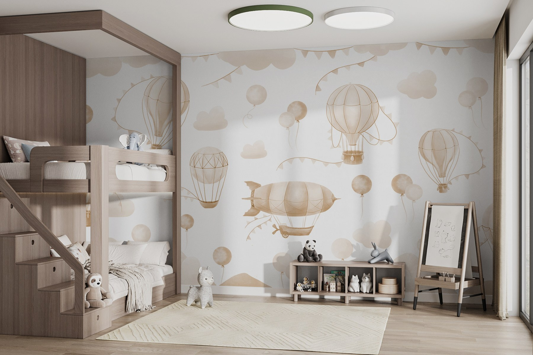 Transformați orice cameră cu această pictură murală capricioasă care prezintă un grup plin de viață de baloane cu aer cald plutind deasupra munților blânzi. Este ca și cum ai aduce o bucată de aventură în interior, unde fiecare privire pare o privire în cerul nesfârșit. Nuanțele suave invită la o atmosferă relaxată, perfectă pentru spațiile confortabile în care visele cu ochii deschiși prind viață. Imaginați-vă sorbind ceai în timp ce priviți aceste baloane fermecătoare plutind, fiecare stârnind o mică imaginație. Fie că se află în camera unui copil sau într-un colțișor creativ, această pictură murală adaugă o notă încântătoare de bucurie, amintindu-le tuturor să țintească mereu sus și să viseze mare.