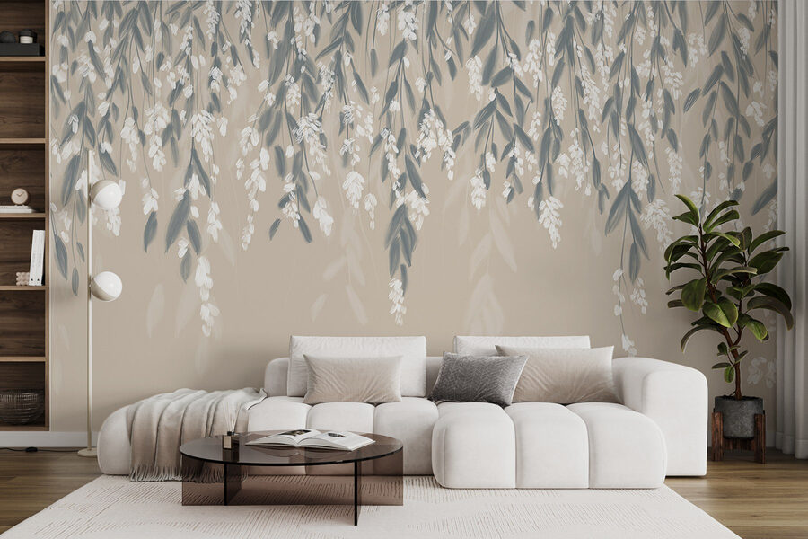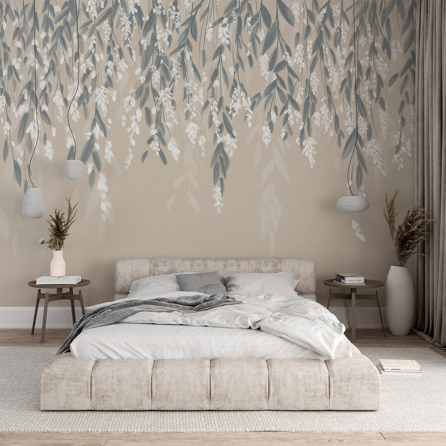 Transform any space into a breezy garden retreat with the “Delicate Blooms on Soft Backdrop” mural. Imagine stepping into a room that feels like it’s kissed by nature—where soft greens and whispery whites dangle from above. It’s perfect for daydreaming or reading that book you’ve been meaning to pick up.