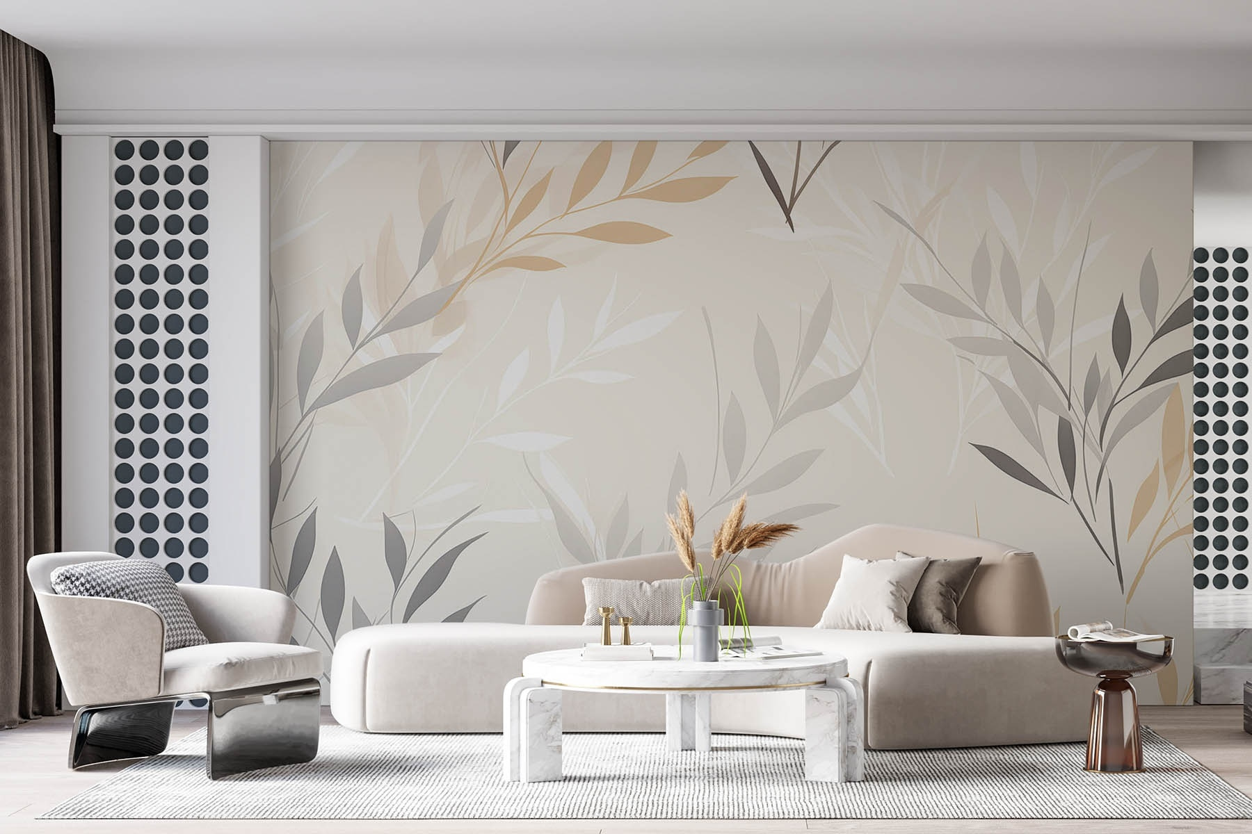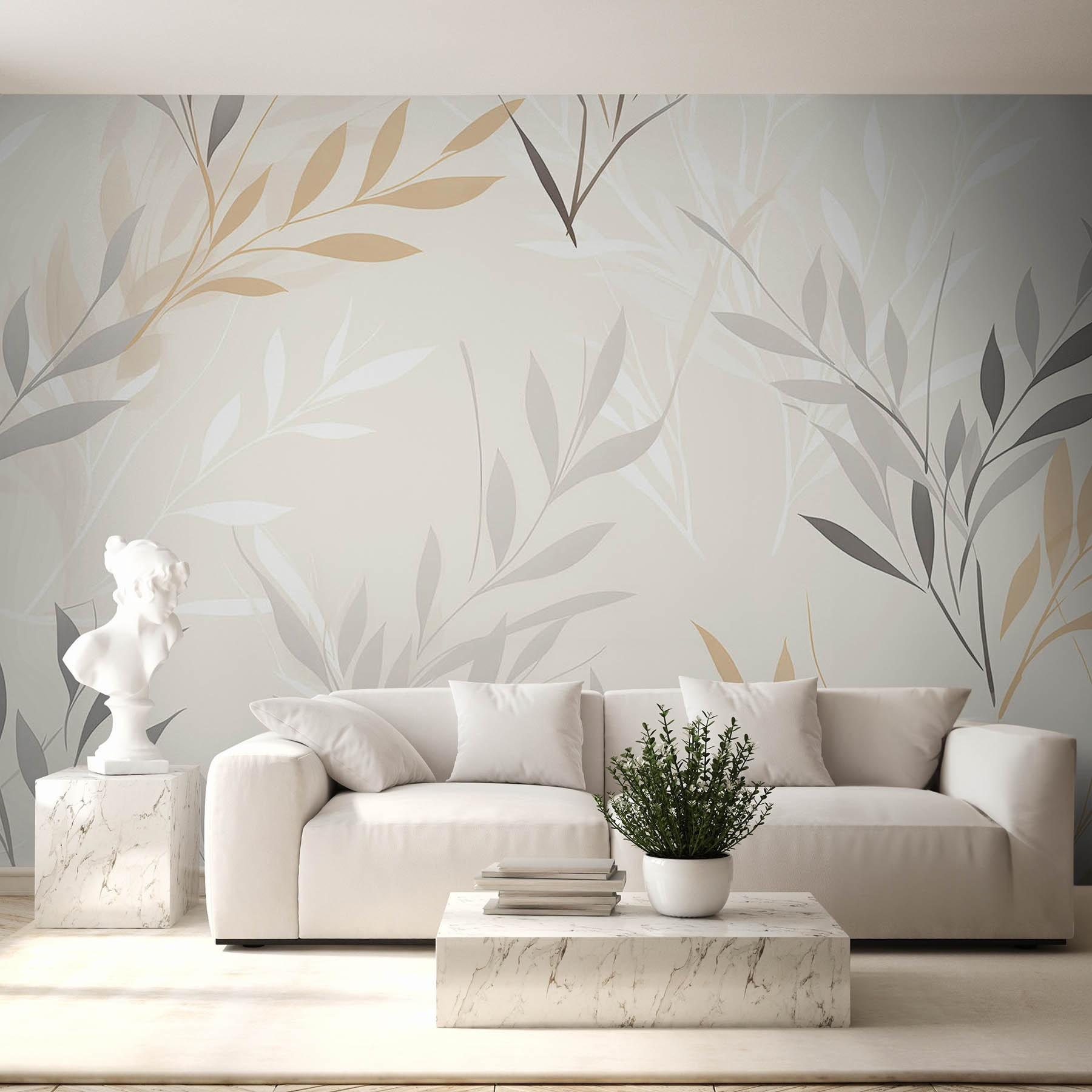 Transformați orice cameră cu această pictură murală încântătoare, cu frunze delicate care dansează pe un fundal alb moale. Este ca și cum ai aduce o bucățică de natură în casă, fără alergii, desigur. Imaginați-vă că vă treziți într-o scenă liniștitoare, care face ca diminețile să fie un pic mai luminoase. Nuanțele subtile de gri și bej creează o atmosferă liniștitoare, perfectă pentru spații confortabile sau pentru un colț senin în care să vă relaxați cu o carte bună. Această pictură murală nu este doar decor; este o invitație la respirație profundă și relaxare. Este perfectă pentru cei care apreciază o notă de eleganță fără a fi prea ostentativă. Lăsați pereții dvs. să spună o poveste – una de liniște și stil!