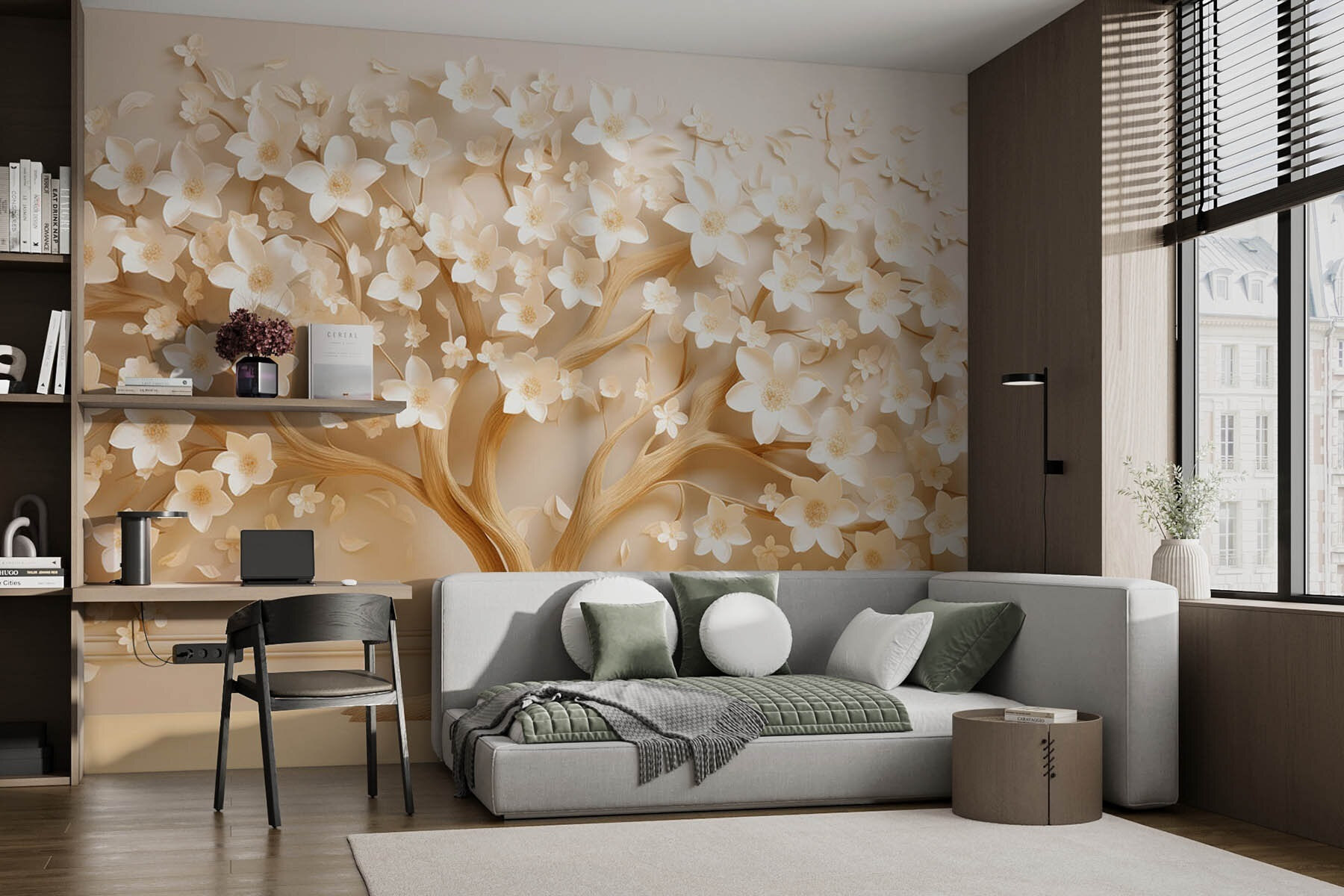 Transformați-vă spațiul cu această pictură murală uimitoare, care prezintă un copac elegant acoperit de flori frumoase. Este ca și cum ați aduce o felie de natură în interior, fără polenul supărător. Imaginați-vă dimineți confortabile cu o ceașcă caldă de cafea, admirând petalele delicate care dansează în lumină. Această pictură murală nu este doar decor – este o experiență. Prietenii s-ar putea chiar să se holbeze la ea, întrebându-se dacă ar trebui să o ude. Perfectă pentru o cameră de zi sau pentru un colț liniștit, aceasta adaugă o notă minunată de liniște. Cine a spus că pereții nu pot înflori?