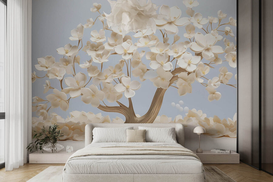 Transformați-vă spațiul cu fermecătorul „Wall Murals Tree with White Flowers” (Fototapet cu copac cu flori albe). Imaginați-vă că intrați într-o cameră și sunteți întâmpinați de un copac înflorit, care inspiră liniște. Florile delicate și delicate creează o atmosferă pașnică, perfectă pentru a visa cu ochii deschiși sau poate doar pentru a scăpa de haosul zilnic. Este ca și cum ați avea o bucată dintr-o grădină japoneză chiar acasă – cine nu ar vrea să bea un ceai în fața acestei frumuseți?