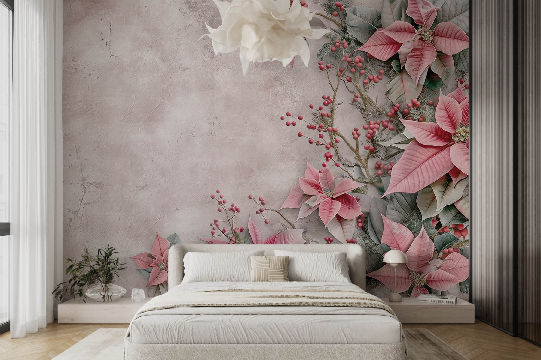 Transformați-vă spațiul cu acest fototapet de vis, cu flori roz încântătoare și fructe de pădure vesele presărate pe un fundal alb și delicat. Este ca și cum ați aduce o grădină delicată în interior – imaginați-vă cum ar fi să vă treziți în fiecare zi în fața acestei scene încântătoare! Culorile sunt atât de liniștitoare, încât ar putea ascunde secretul relaxării. Fie că este vorba de un colț confortabil pentru citit sau de un living plin de viață, acest fototapet adaugă o notă de fantezie și farmecul naturii. Prietenii vor rămâne uimiți, neștiind dacă au pășit într-o galerie sau în casa ta. Serios, cine ar fi crezut că decorul poate stârni atâta bucurie? Perfect pentru cei care cred că fiecare perete spune o poveste – care este a ta?