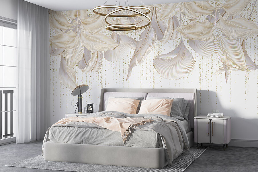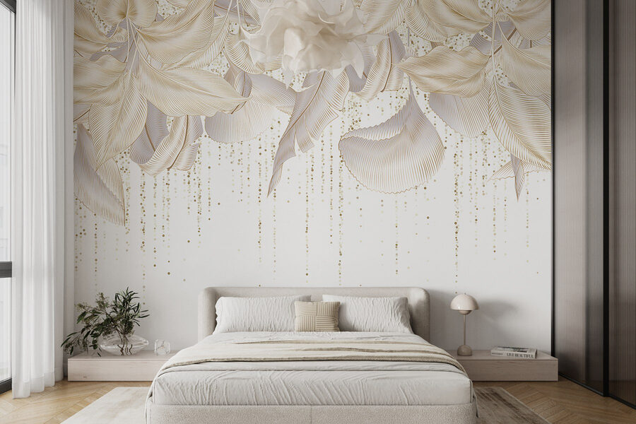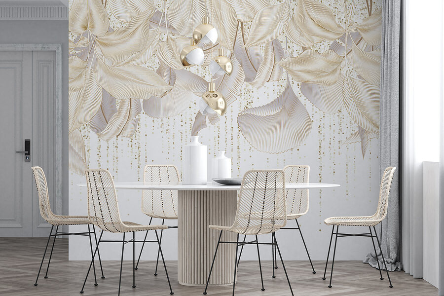 Transformați-vă spațiul cu pictura murală încântătoare “Frunze delicate în aranjamente moi”. Este ca și cum ai aduce o grădină aerisită în interior, unde fiecare privire se simte ca o evadare senină. Paleta moale de culori dansează ușor, amintind de o zi caldă de primăvară. Imaginați-vă sorbind cafea în timp ce vă bucurați de acest fundal liniștit, perfect pentru după-amiezele leneșe sau sesiunile de brainstorming creativ. Perfect pentru orice cameră, acesta adaugă o notă răcoritoare care șoptește eleganță. S-ar putea chiar să uitați că sunteți în interior – cine are nevoie de o fereastră când aveți această încântare de frunze? Lăsați pereții dvs. să spună o poveste de calm și frumusețe.