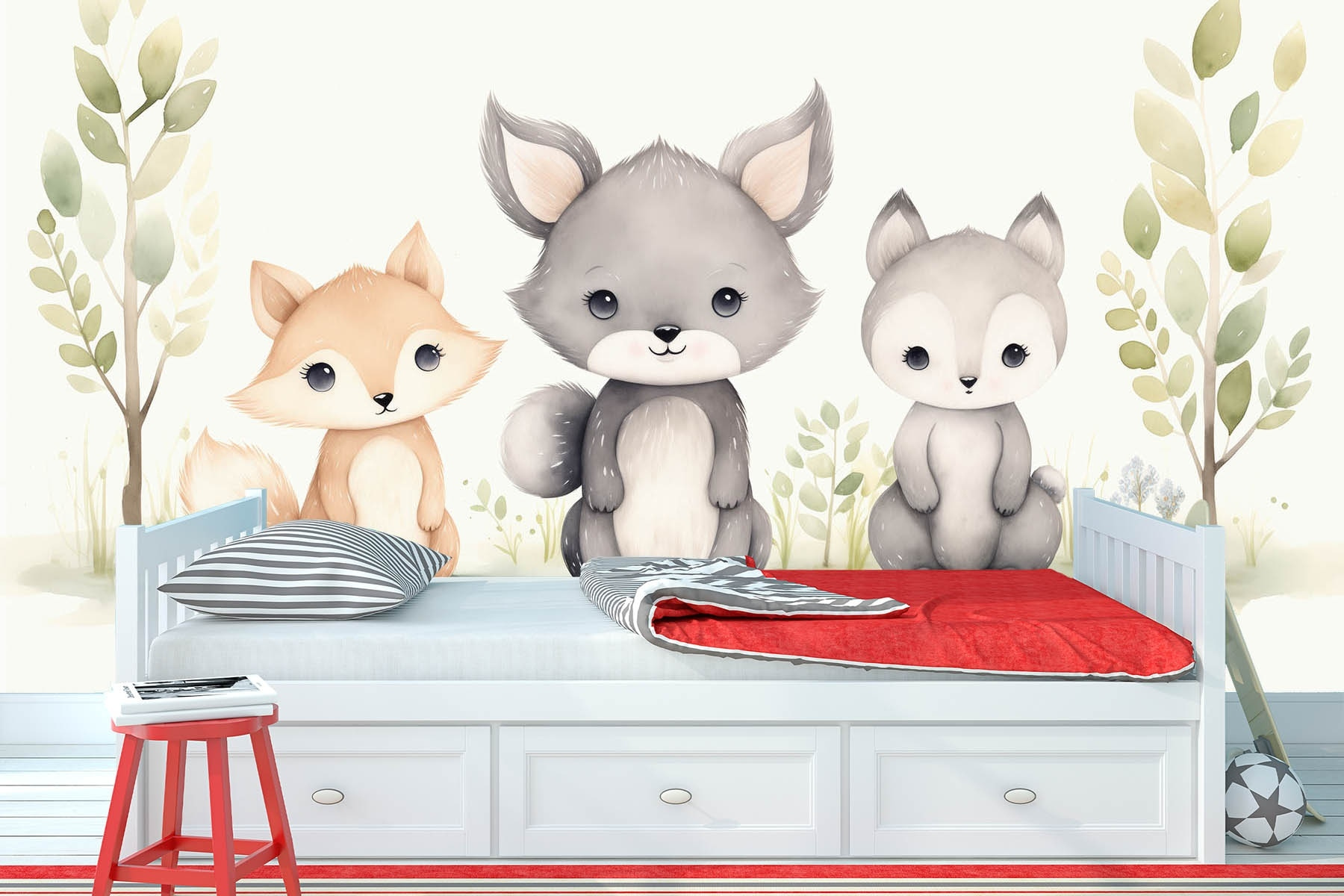 Adăugați un strop de farmec oricărei camere cu acest tapet încântător cu animale adorabile care se relaxează pe iarba luxuriantă. Imaginați-vă o vulpe mică și curioasă, un lup drăgălaș și un cățeluș dulce care se joacă împreună. Este ca o întâlnire confortabilă a animalelor din pădure, care ar putea face chiar și cel mai morocănos adult să zâmbească. Perfect pentru camerele copiilor sau zonele de joacă, acest tapet fermecător aduce o notă delicată de natură în interior. De fiecare dată când cineva trece pe lângă el, cu siguranță va stârni bucurie și poate chiar și un zâmbet sau două – pentru că cine nu ar iubi un trio de prieteni blănoși ca tovarăși de perete? Pereții dvs. ar putea deveni cel mai popular loc din casă!