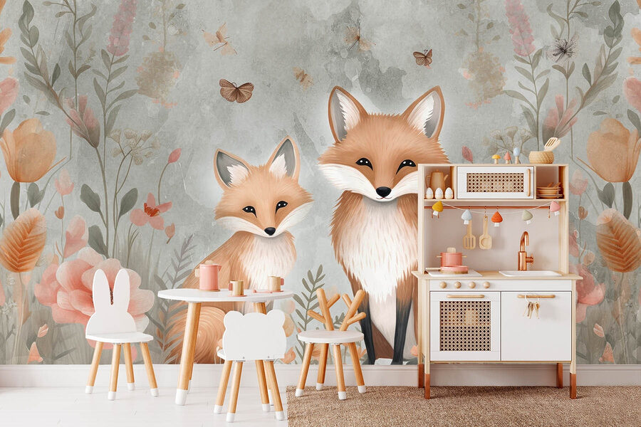 Transformați orice spațiu cu acest mural fermecător, care prezintă două vulpi adorabile cuibărite într-un câmp de flori înflorite. Este ca și cum ați aduce o bucățică din natură direct în casa dvs.! Imaginați-vă că savurați cafeaua de dimineață în timp ce aceste creaturi curioase vă salută – fiecare zi va fi ca o plimbare într-o pajiște scăldată de soare. Culorile delicate și florile capricioase creează o atmosferă confortabilă, dar plină de viață. Perfectă pentru camera copiilor sau pentru a da o notă capricioasă livingului, această lucrare de artă promite să stârnească zâmbete și poate chiar una sau două povești. Cine nu și-ar dori propria mini aventură în sălbăticie?