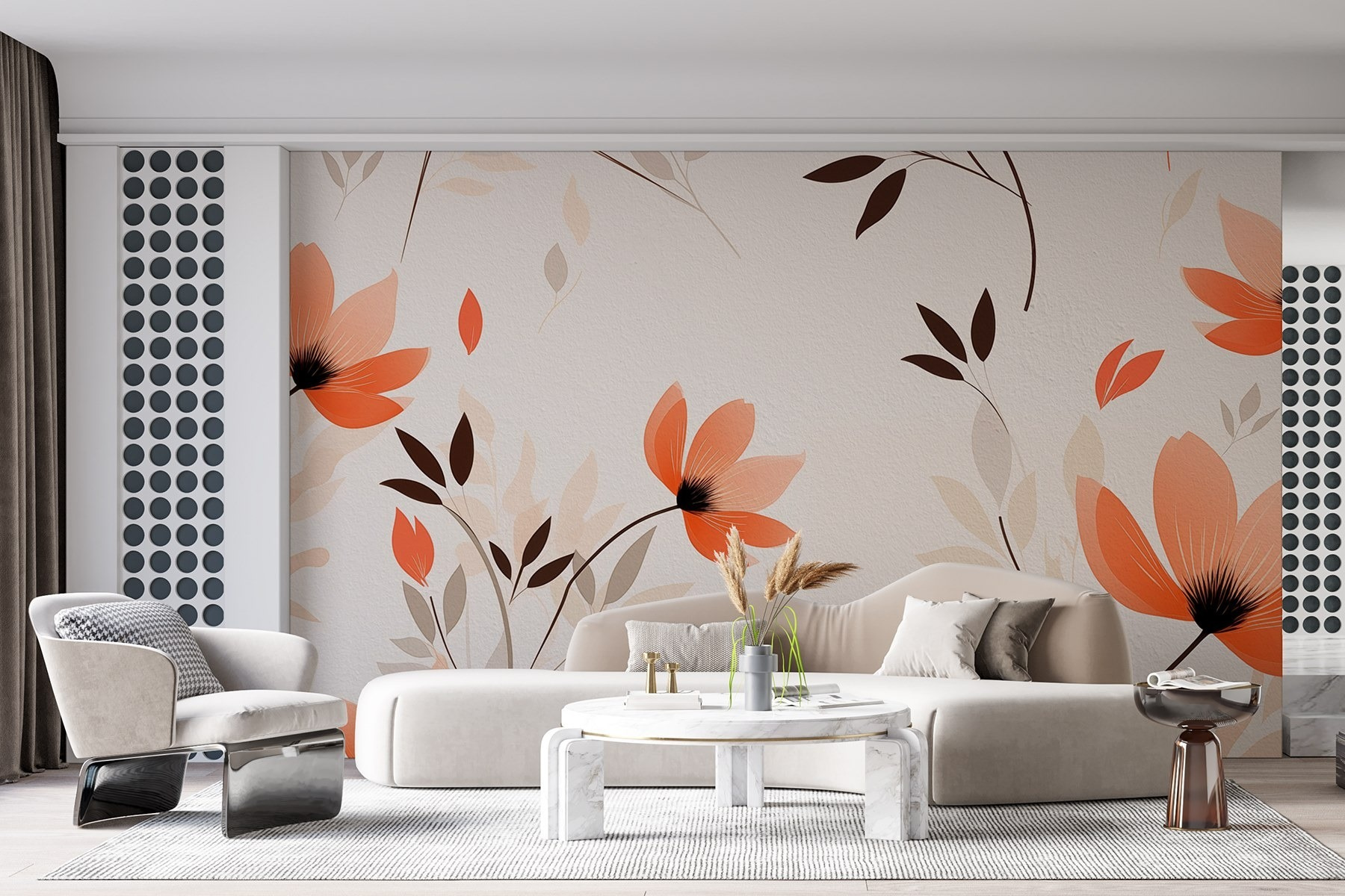 Transformați orice spațiu într-o oază de seninătate cu această minunată pictură murală cu flori delicate și desene cu frunze. Imaginați-vă că vă plimbați printr-o grădină japoneză liniștită de fiecare dată când intrați în cameră – este ca și cum ați aduce o felie de natură în interior. Tonurile calde și modelele blânde creează o atmosferă liniștitoare, perfectă pentru un colț de lectură confortabil sau o zonă de zi luminoasă și veselă. Imaginați-vă sorbind ceai în timp ce sunteți înconjurați de acest farmec floral. Este o modalitate simplă de a invita căldura și frumusețea fără atâta agitație. Cine ar fi crezut că decorațiunile de perete pot fi atât de răcoritoare?