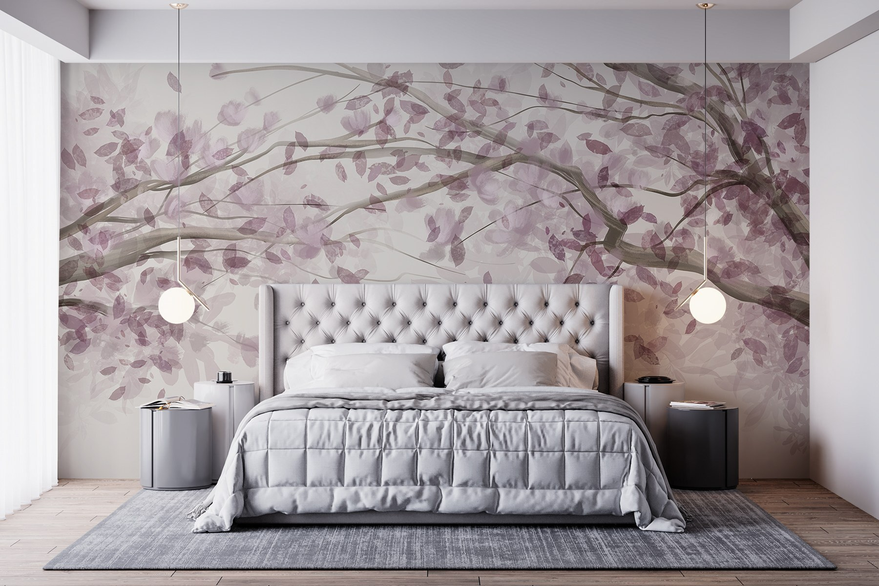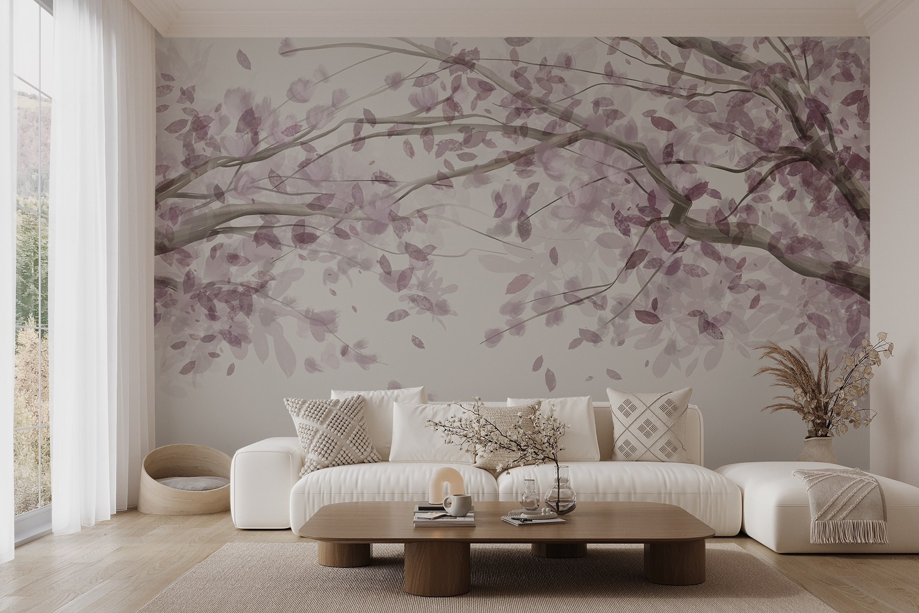 Transformați orice cameră într-o evadare senină cu această pictură murală încântătoare cu un copac împodobit cu frunze mov elegante. Este ca și cum ai aduce în casă o bucată dintr-o grădină japoneză liniștitoare. Imaginați-vă sorbind ceai în timp ce priviți aceste ramuri moi de acuarelă – o astfel de îmbunătățire a dispoziției! Această pictură murală șoptește liniște, ceea ce o face perfectă pentru un colț de lectură confortabil sau pentru o cameră de copii jucăușă. În plus, aceste nuanțe de violet? Adaugă un strop de farmec fără a copleși simțurile. Cine nu ar simți un pic de bucurie de fiecare dată când trece pe lângă ea? Perfect pentru oricine caută o atingere a grației naturii la domiciliu. Îmbrățișați frumusețea!
