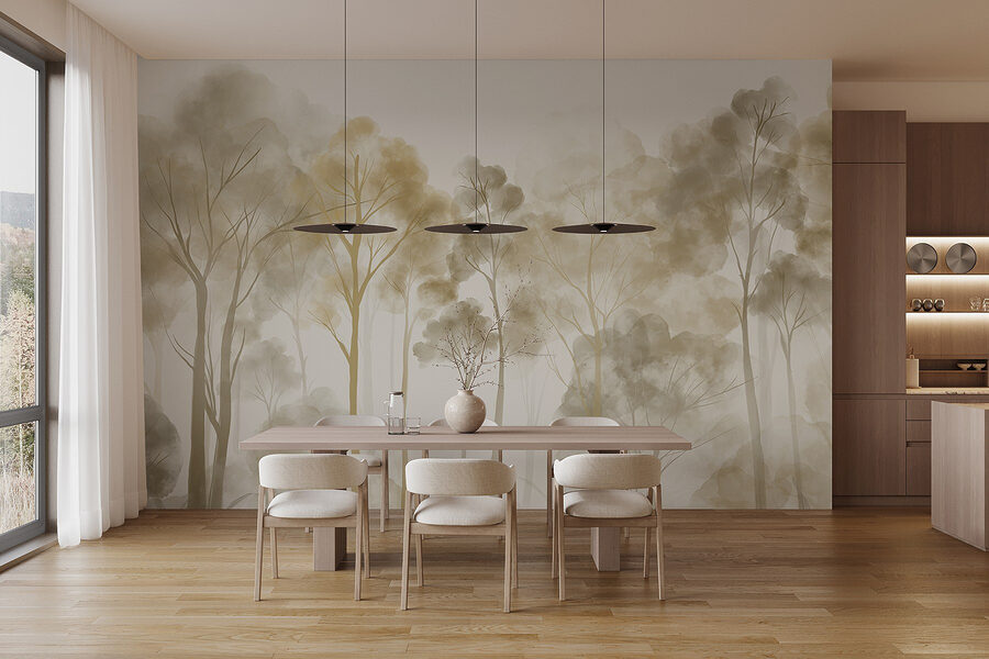 Transformați-vă spațiul într-o evadare senină cu această frumoasă pictură murală de perete cu copaci într-o pădure cețoasă. Imaginați-vă că pășiți într-un tărâm de vis, unde ceața se înfășoară în jurul trunchiurilor impunătoare, șoptindu-vă secretele naturii. Această pictură murală aduce o notă blândă de nuanțe pământii, perfectă pentru a crea o atmosferă confortabilă. Imaginați-vă că vă relaxați cu o carte în timp ce culorile blânde îmbrățișează camera – este ca o îmbrățișare caldă pentru pereții dvs. Fie că este vorba de o cameră de zi sau de un colțișor de lectură, această pictură murală adaugă acea atmosferă liniștită pe care toată lumea o adoră. Iubitori de natură, pregătiți-vă să vă simțiți ca acasă. În plus, cine nu vrea o pădure în miniatură la câțiva pași distanță?