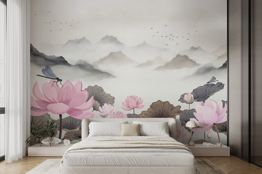 Transformați-vă spațiul cu această pictură murală încântătoare, cu un amestec de vis de flori și ape senine. Imaginați-vă că pășiți în camera dvs. și sunteți întâmpinați de crini roz, ale căror petale se întind grațios, ca și cum s-ar îndrepta spre soare. Este ca și cum ai aduce o bucățică de natură în interior – nu este nevoie de pantofi murdari! Culorile suave creează o atmosferă calmă, perfectă pentru relaxare după o zi lungă. Adăugați această pictură murală pe peretele dvs. și vedeți cum stârnește conversații și inspiră vise cu ochii deschiși despre grădini liniștite și după-amieze leneșe. Natura nu a arătat niciodată atât de bine în interior!