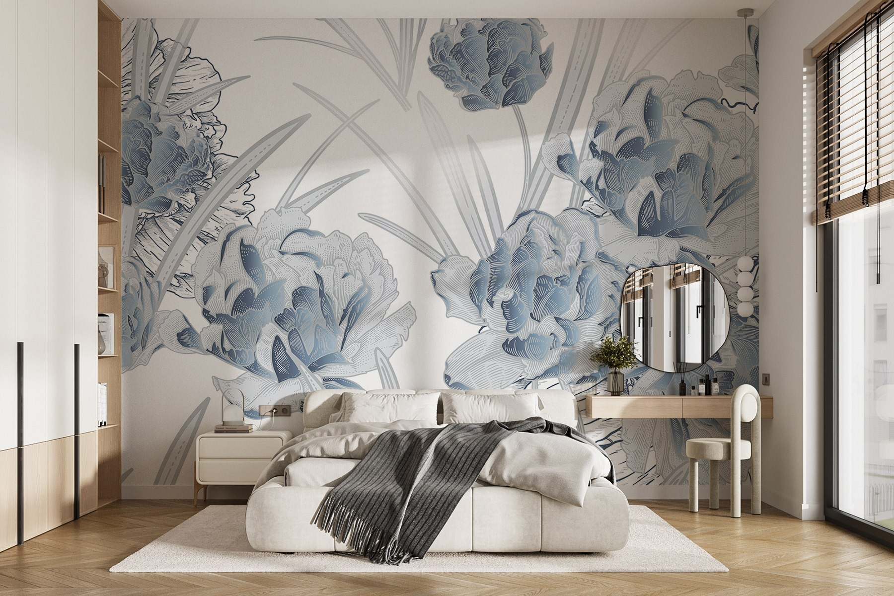 Transformați orice spațiu cu fermecătorul “Delicate Blooms in Soft Hues”. Este ca și cum ai avea propria ta mică grădină în interior, dar fără a fi nevoie de un deget verde. Imaginați-vă acest lucru: trezirea în fața unui perete plin de flori blânde în nuanțe de albastru, primitoare și senine, făcând ca fiecare moment să fie mai special. Fie că este vorba de un colț de lectură confortabil sau de o bucătărie plină de viață, această pictură murală adaugă un strop de frumusețe care se simte șic fără efort. Prietenii s-ar putea întreba dacă ați angajat un decorator și cine trebuie să recunoască că este doar un perete fabulos? Liniile fine și tonurile moi creează o ambianță de vis, învăluindu-vă ca o îmbrățișare caldă într-o zi răcoroasă.