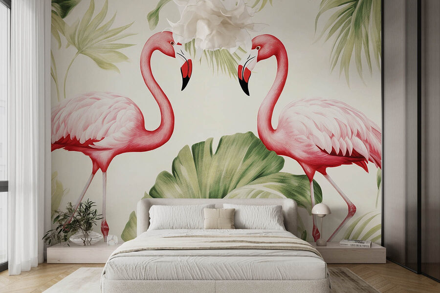 Transformați-vă spațiul într-un paradis tropical cu această pictură murală vibrantă care prezintă o pereche de flamingo roz plin de viață înconjurați de frunze verzi luxuriante. Este ca și cum ai avea o mini vacanță chiar în casa ta! Imaginați-vă că vă treziți în fiecare zi cu aceste păsări ciudate care pozează jucăușe pe un fundal moale. Culorile proaspete insuflă viață în orice cameră, făcând-o să se simtă primitoare și distractivă. Fie că este vorba de o cameră de zi confortabilă sau de un spațiu de lucru inspirat, această pictură murală adaugă un strop de personalitate. Prietenii și familia vor vorbi cu siguranță despre ea. S-ar putea chiar să vedeți un cocktail flamingo în viitorul dumneavoastră!