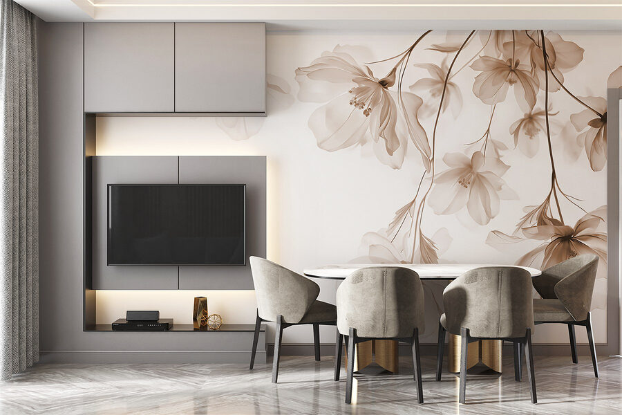 Transformați orice spațiu cu această pictură murală uimitoare cu flori delicate în nuanțe delicate. Imaginați-vă că pășiți într-o grădină senină chiar din camera dvs. de zi – fiecare floare șoptește liniște ca și cum pictura naturii a prins viață. Nu este vorba doar de decor; este o experiență. Imaginați-vă că primiți prieteni, iar conversațiile lor se estompează în fundal în timp ce admiră această priveliște minunată. Culorile blânde insuflă căldură în cameră, făcând-o să se simtă deschisă și primitoare. Perfect pentru a crea acea atmosferă de refugiu liniștit. O mică bucată de paradis, chiar pe peretele dvs.