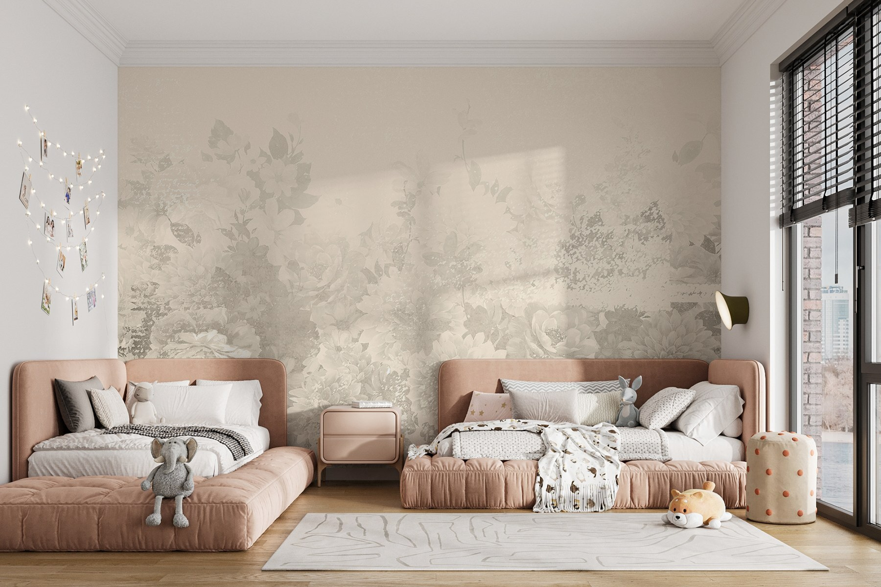 Transformați orice cameră cu această uimitoare pictură murală florală delicată, în care tonurile moi se îmbină ca o briză blândă de primăvară. Imaginați-vă că pășiți în spațiul dvs. și simțiți că tocmai ați intrat într-o grădină senină. Nuanțele subtile creează un fundal liniștitor, perfect pentru relaxare după o zi lungă. Este ca și cum ai avea o conversație blândă cu natura chiar pe pereții tăi!