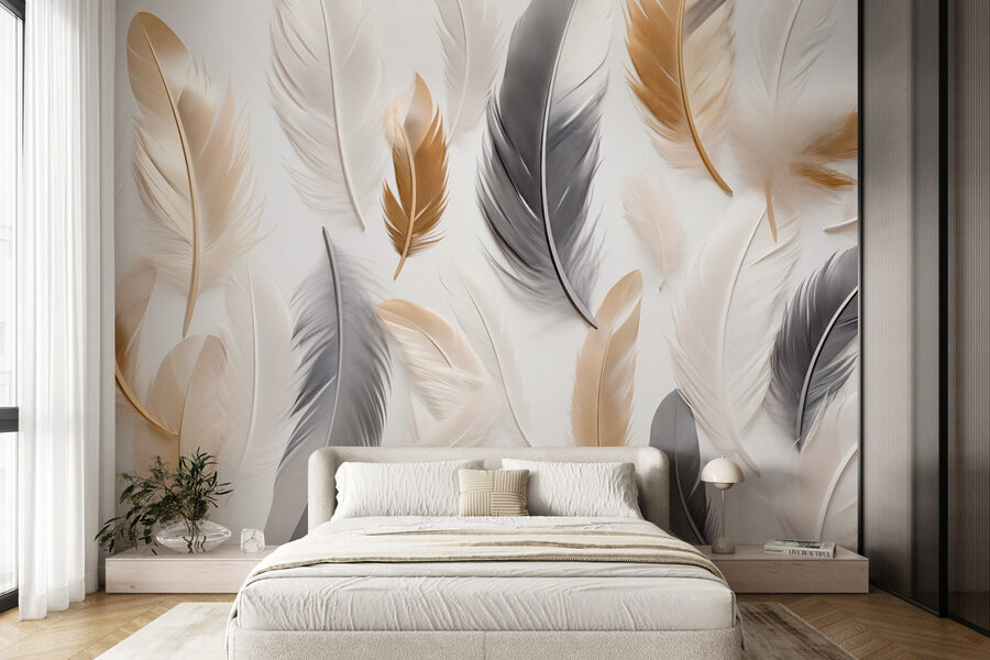 Transformați orice cameră cu această pictură murală uimitoare, care prezintă un aranjament frumos de pene pe un fundal alb strălucitor. Este ca și cum ai aduce o atmosferă aerisită și veselă chiar în casa ta. Imaginați-vă că vă treziți în fiecare dimineață în fața acestui design elegant, care vă amintește de zilele calme petrecute în aer liber. Amestecul de nuanțe de pene oferă un sentiment de profunzime – fiecare pare să aibă propria sa personalitate, așteptând doar ca cineva să o observe. Perfectă pentru un colț de lectură confortabil sau o intrare elegantă, este genul de lucrare de artă care îi va face pe oaspeți să privească de două ori. Lăsați pereții dvs. să spună o poveste, invitând căldura și o atingere de natură în interior.