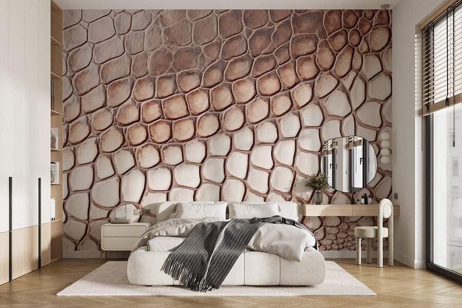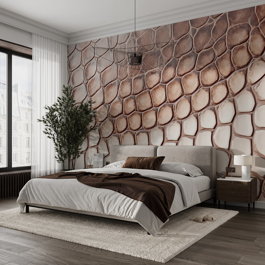 Transformați-vă spațiul cu o pictură murală îndrăzneață și intrigantă, cu un model de piele de reptilă. Imaginați-vă că pășiți într-o cameră care pare un pic sălbatică, dar surprinzător de confortabilă. Acest design adaugă o notă neașteptată, făcând pereții să strălucească de personalitate. Perfect pentru un perete caracteristic într-un lounge sau chiar într-un spațiu de lucru creativ, acesta invită privirile curioase și complimentele.