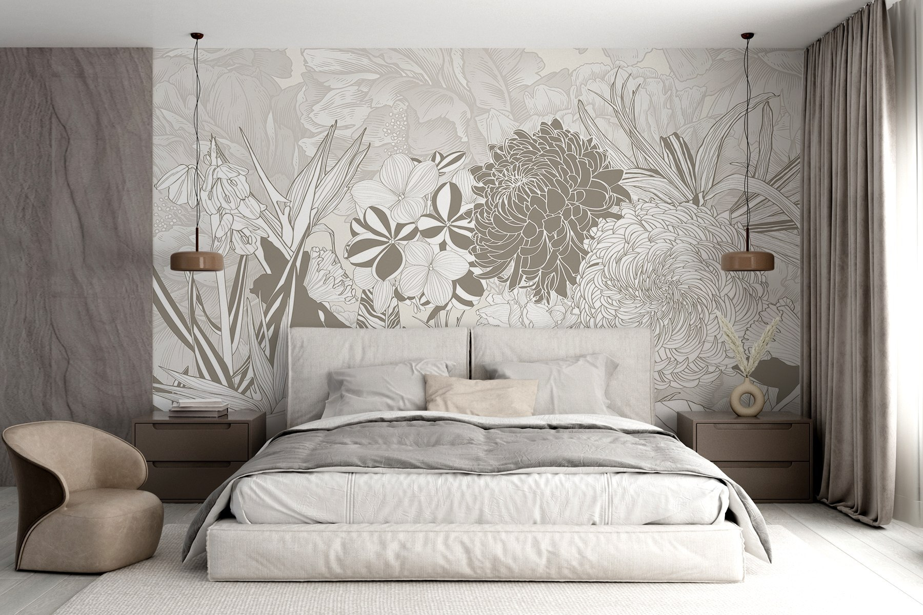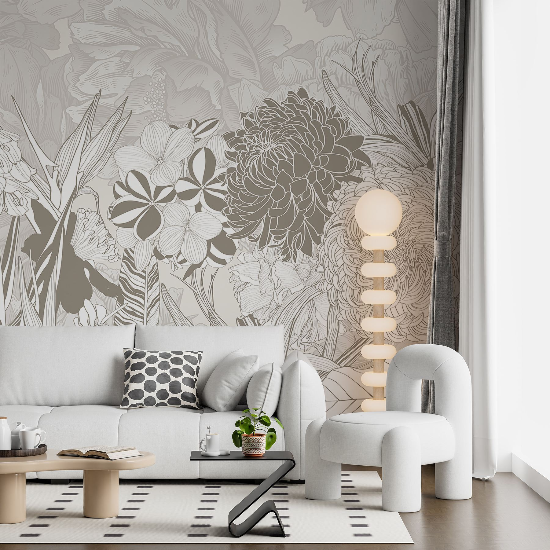 Transformați-vă spațiul cu încântătorul “Floral Beauty in Soft Hues”. Această pictură murală este ca o grădină primitoare, gata să insufle viață în orice cameră. Imaginați-vă o dimineață senină, cu tonuri discrete de flori care vă decorează elegant pereții – petale moi și linii delicate, evocând un sentiment de calm.