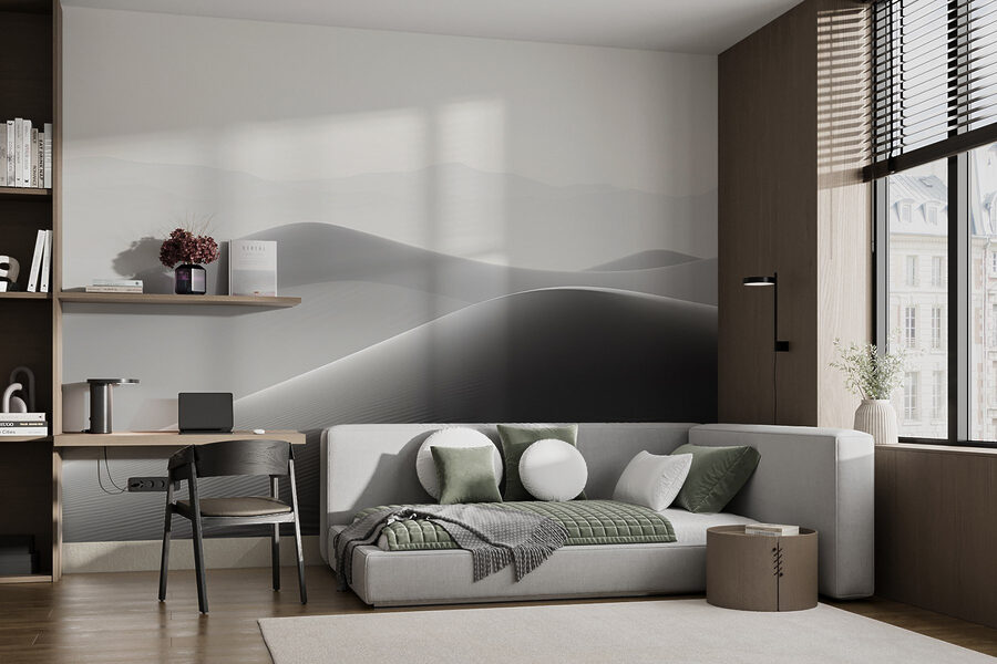 Transformați-vă spațiul cu alura liniștitoare a Fototapet Sand Dunes in the Desert. Imaginați-vă intrând într-o cameră în care aceste dune moi și elegante se întind pe pereți, oferind instantaneu o gură de aer proaspăt. Este ca și cum ați avea o evadare senină în deșert chiar acasă. Curbele blânde și nuanțele subtile creează o blândețe vizuală, perfectă pentru seri confortabile sau discuții stimulative cu prietenii.