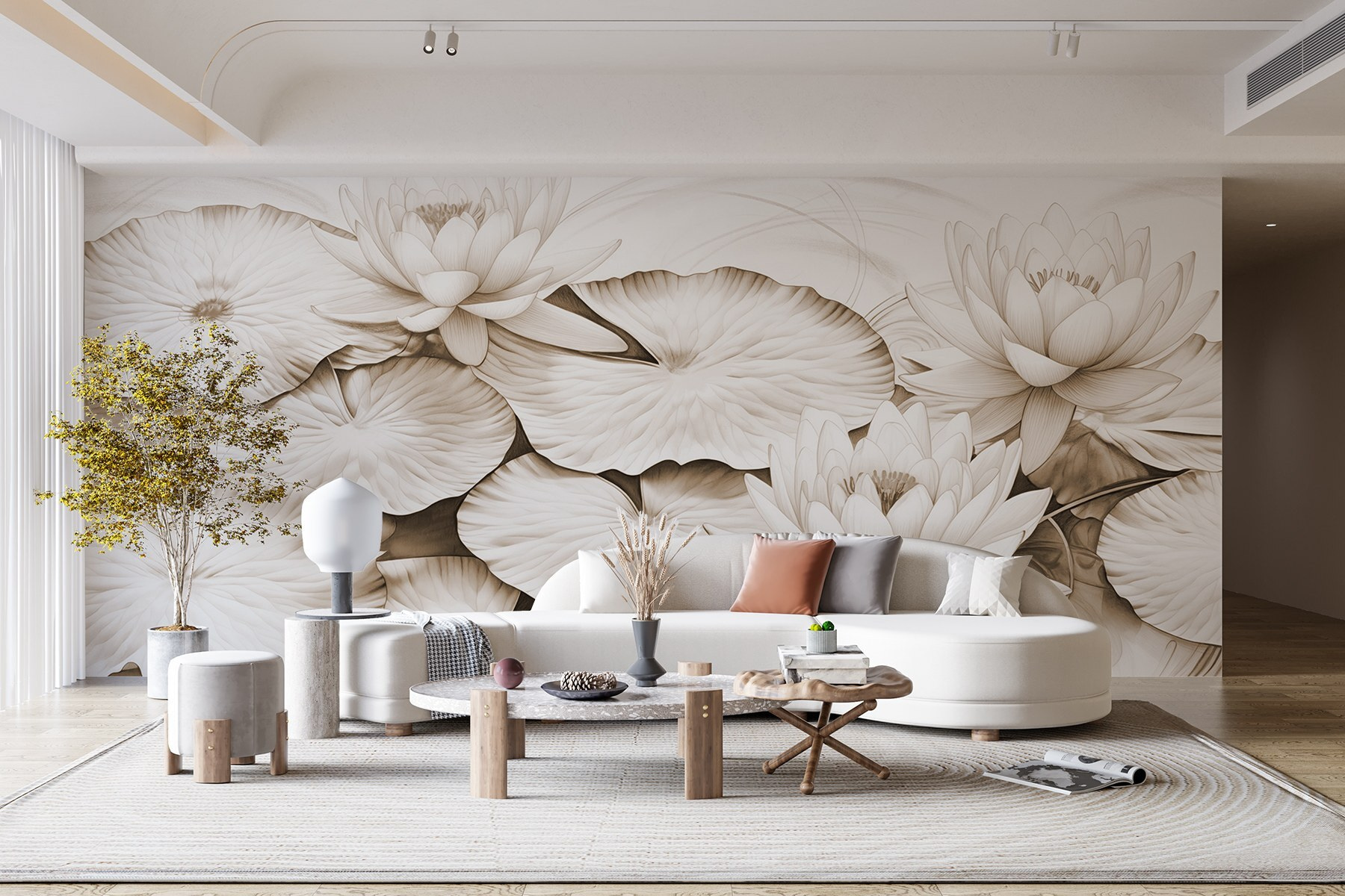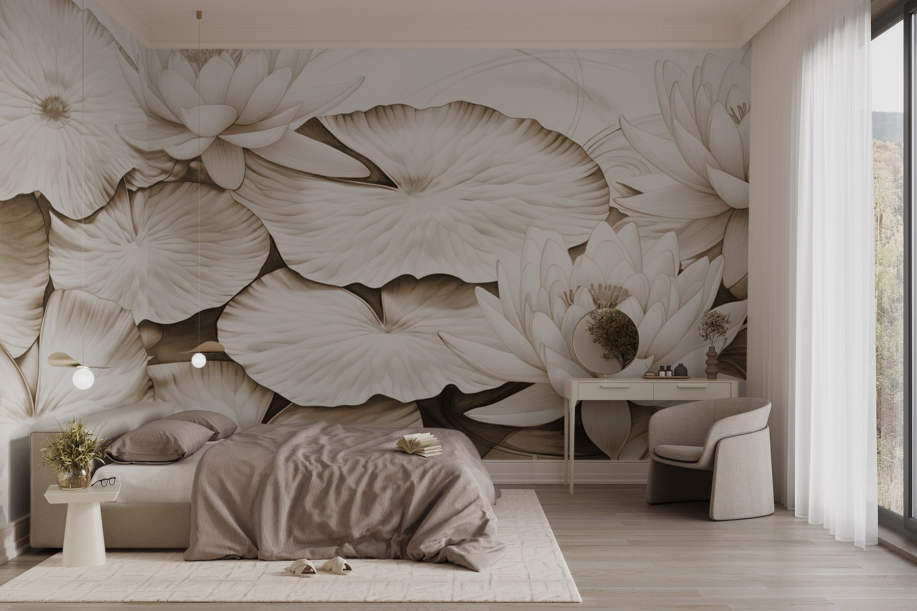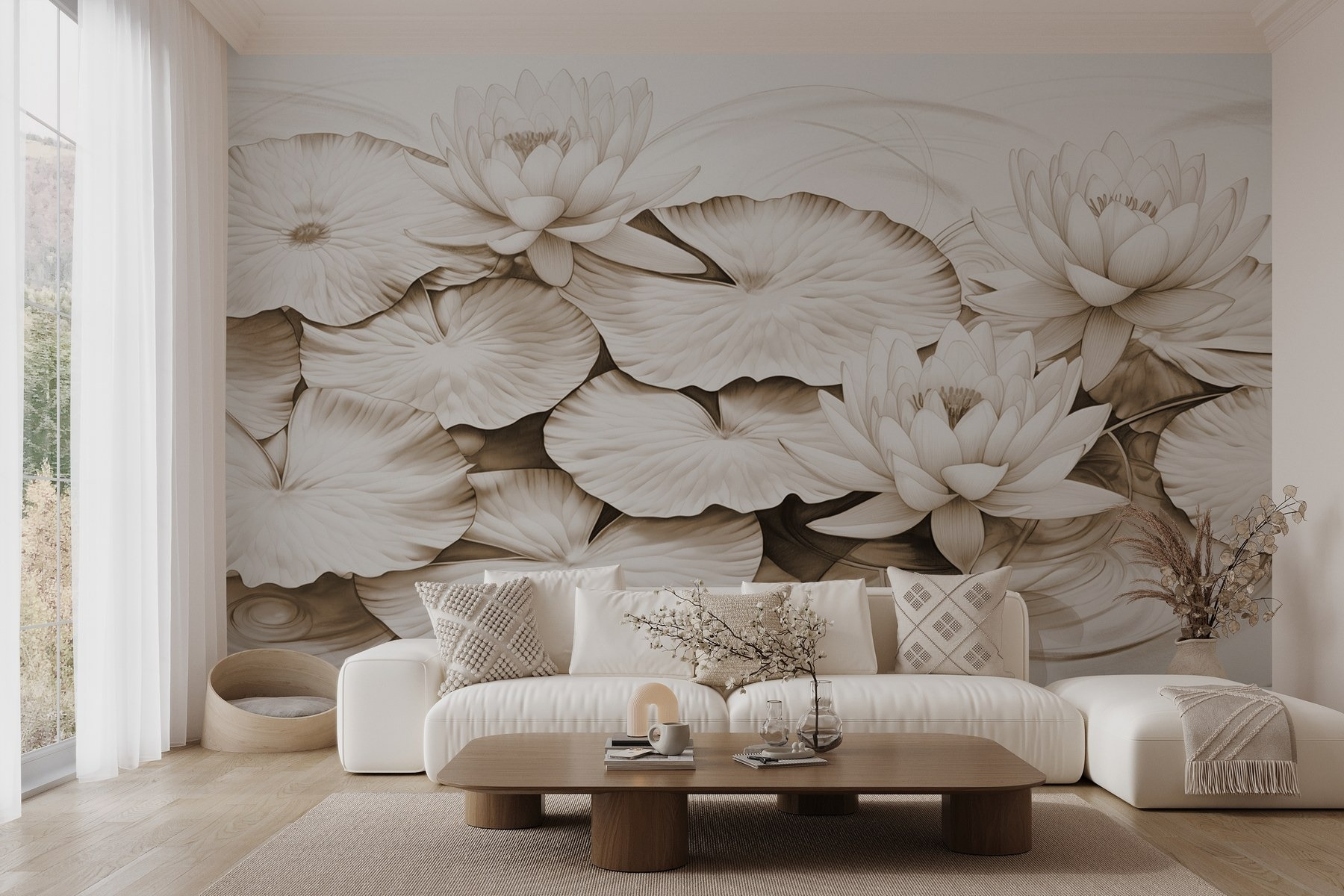 Transformați orice cameră cu această pictură murală încântătoare cu nuferi delicați și crini de apă încântători. Imaginați-vă că intrați în spațiul dvs. și vă simțiți ca și cum v-ați rătăcit într-un iaz senin, cu reflexii moi și valuri blânde. Este ca și cum calmul naturii este doar la un perete distanță. Perfectă pentru cei care tânjesc după o atmosferă liniștită, această pictură murală aduce o fărâmă de pace – poate chiar inspirație pentru un viitor vis cu ochii deschiși. Subtilă, dar izbitoare, aceasta dansează frumos cu lumina, evocând nostalgia confortabilă. Un început de conversație perfect sau, pur și simplu, un fundal liniștit pentru momente de liniște.