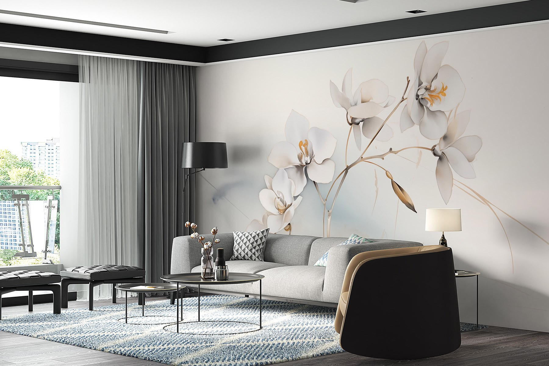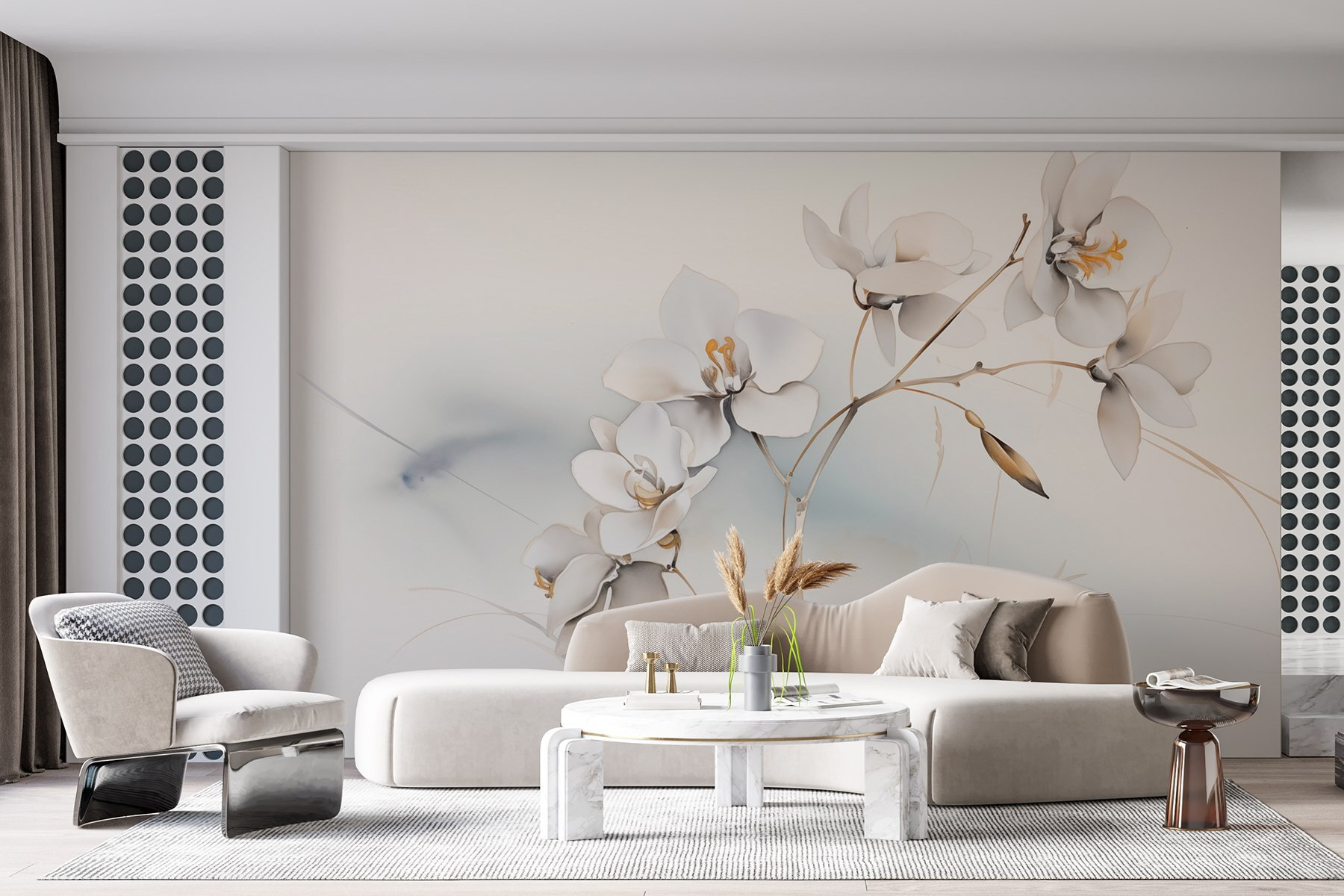 Transformați orice cameră cu această pictură murală uimitoare, care prezintă flori albe delicate așezate grațios pe ramuri. Imaginați-vă că intrați într-un spațiu care pare instantaneu mai liniștit și mai primitor. Paleta moale creează o atmosferă senină, perfectă pentru relaxare după o zi lungă. Imaginați-vă nopți confortabile în timp ce priviți aceste flori, ca și cum ar aduce un pic de natură în interior. Este ca și cum ai avea o grădină personală, fără stropitoarea și insectele ocazionale. Un fundal perfect pentru momente artistice, discuții sincere sau pur și simplu pentru a visa cu ochii deschiși. Aduceți o atingere de farmec floral acasă.