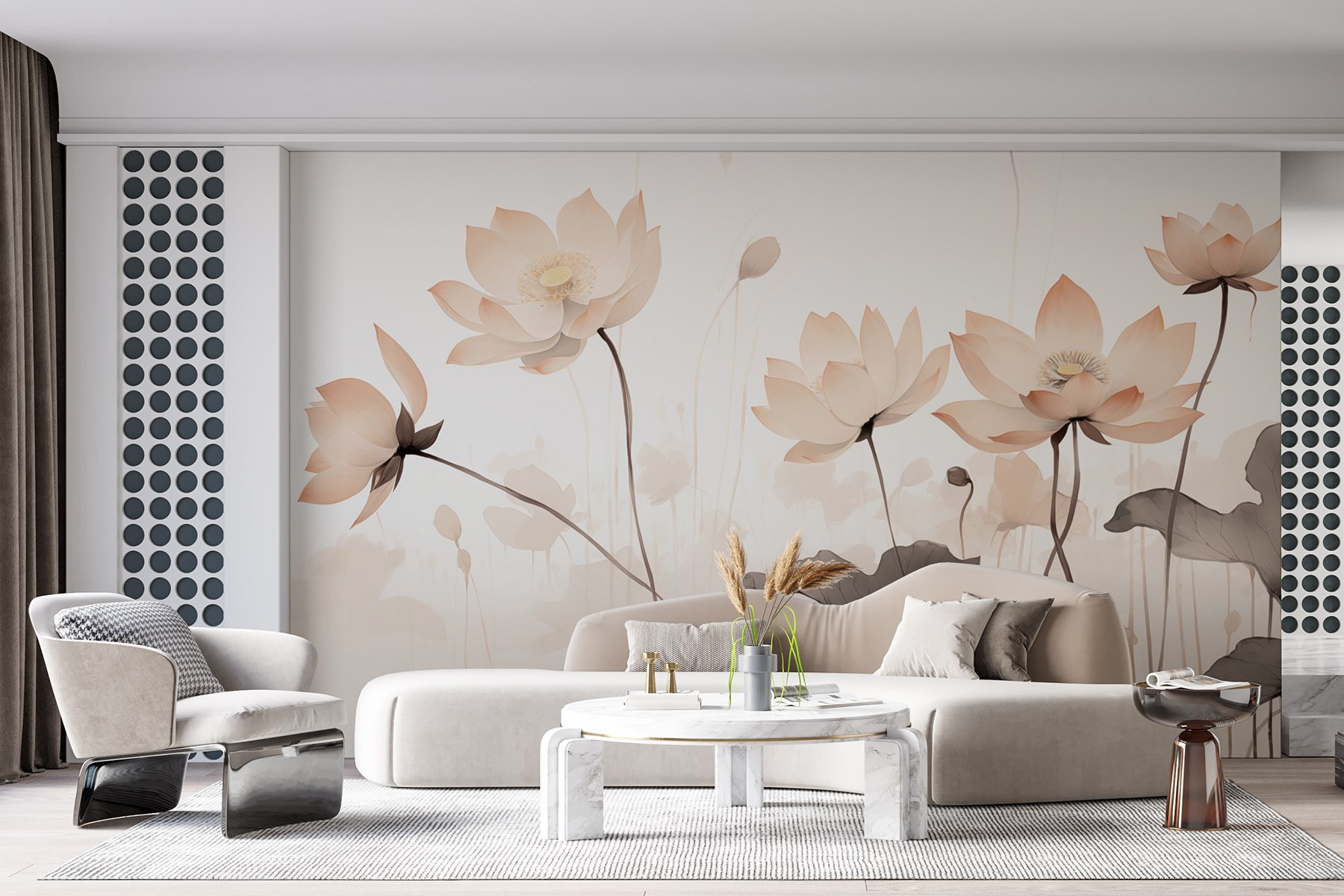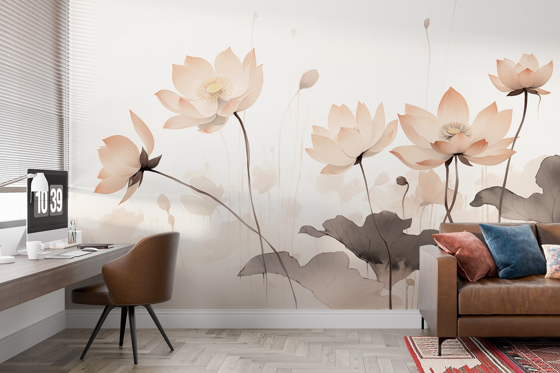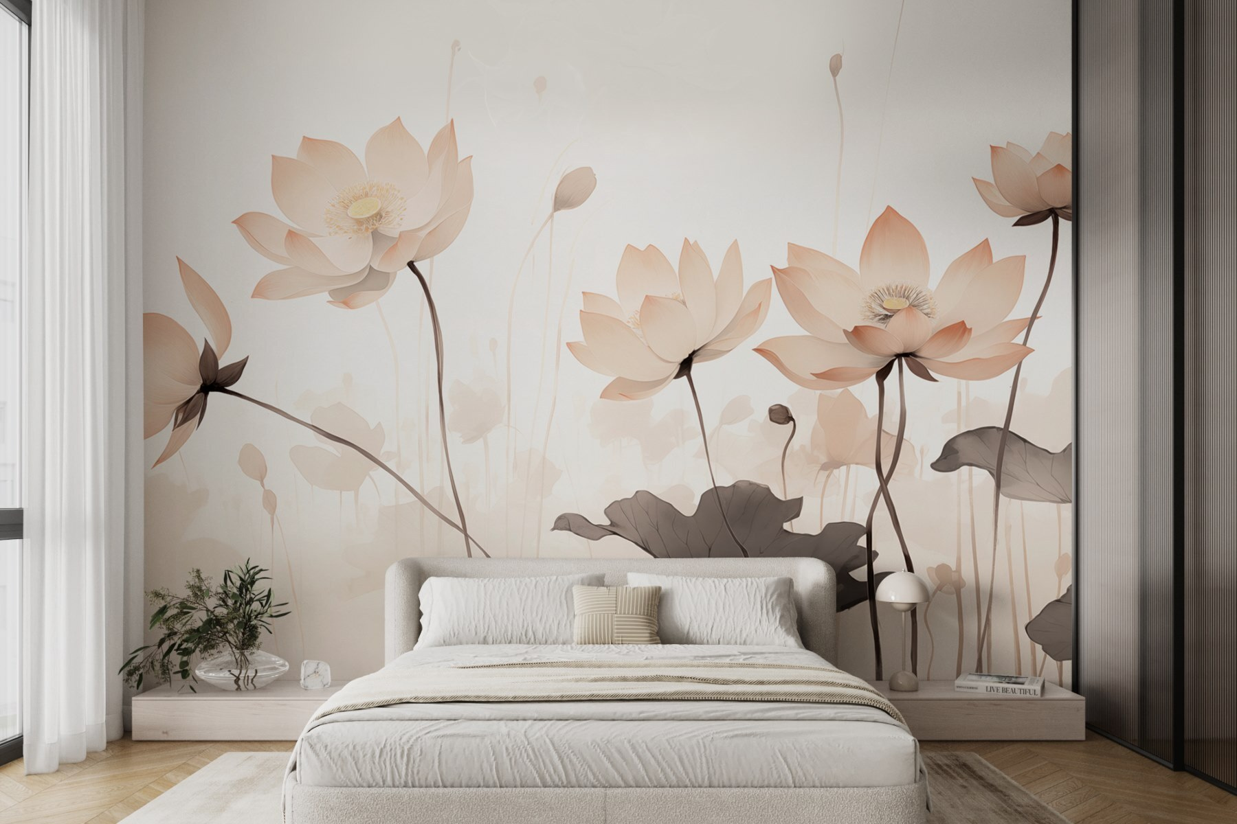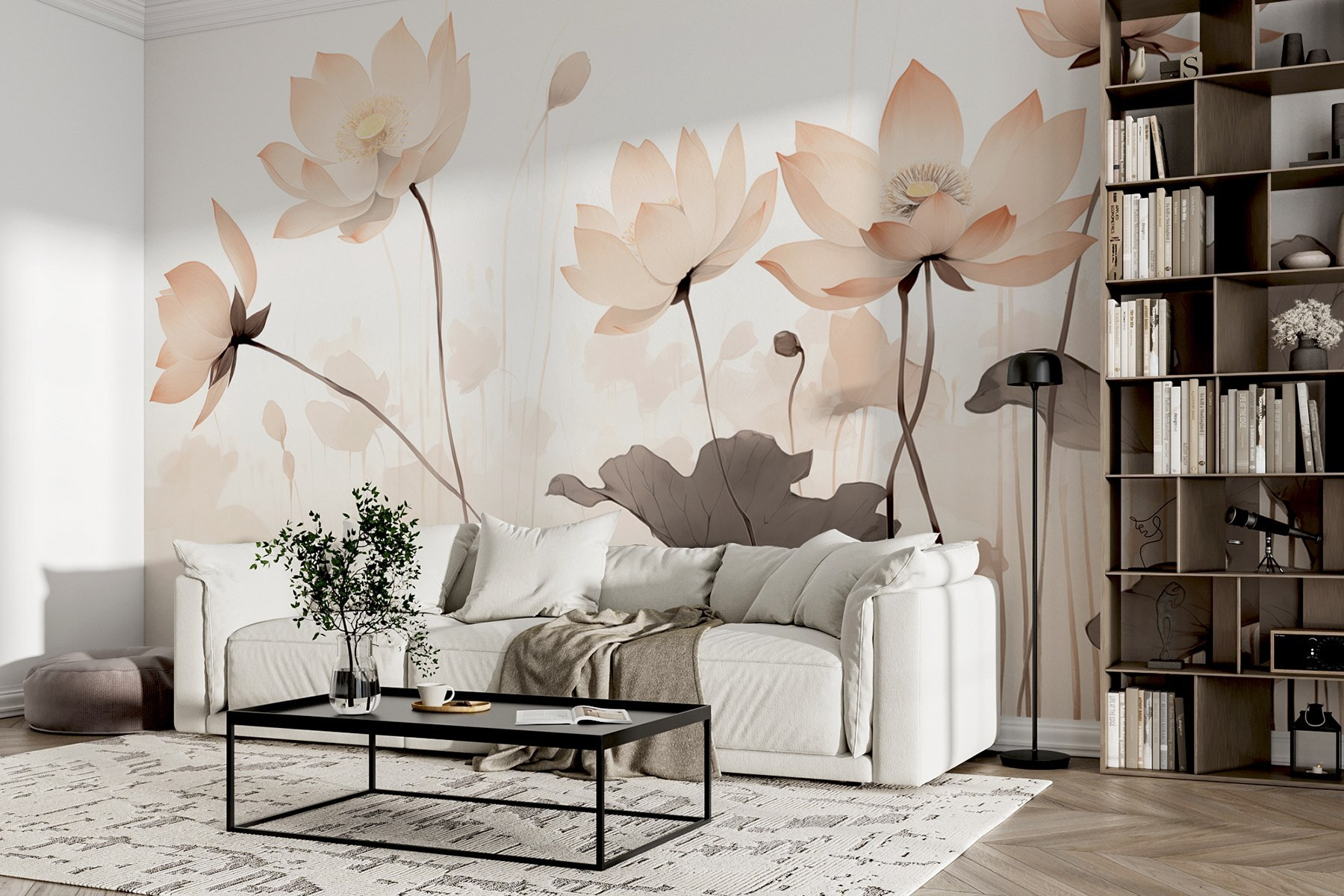 Transformați-vă spațiul cu această pictură murală încântătoare care se simte ca o îmbrățișare blândă din partea naturii. Imaginați-vă flori moi care răsar pe un fundal senin, șoptindu-le cuvinte dulci oricui trece pe lângă ele. Fiecare floare spune o poveste – poate că este o amintire a după-amiezilor leneșe de vară petrecute în grădini sau o amintire a luminii soarelui care se filtrează prin copacii cu frunze. Cu tonurile sale deschise și designul grațios, această pictură murală luminează fără efort o cameră, făcând-o să pară mai deschisă și mai vie. Perfectă pentru un colț de lectură confortabil sau un dormitor liniștit, ar putea inspira un vis cu ochii deschiși sau două. Intrați într-o lume proaspătă și plină de viață fără a fi nevoie să îngrijiți o grădină. Cine ar fi crezut că florile pot face asta?