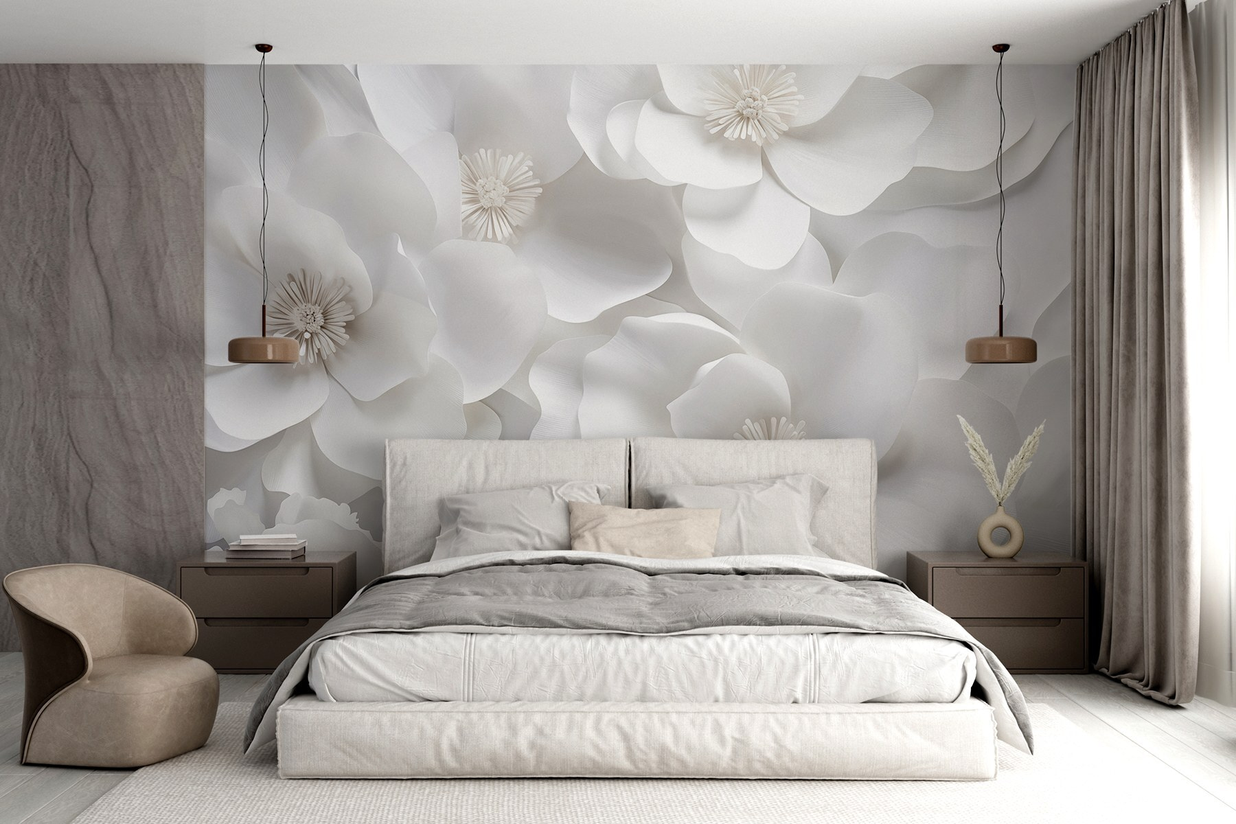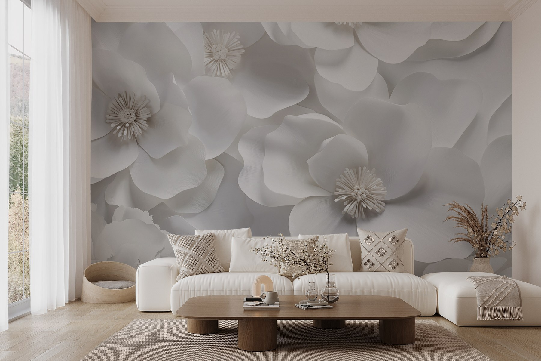 Transformați un spațiu plictisitor într-un refugiu senin cu “Fototapet Group of White Flowers”. Imaginați-vă că intrați într-o cameră în care flori supradimensionate înfloresc luminos, aducând o notă de natură în interior. Paleta moale și subtilă favorizează un aer de calm, perfect pentru nopți confortabile sau brunch-uri pline de viață cu prietenii. Se simte ca și cum ai privi într-o grădină în zori – blând, proaspăt și revigorant. În plus, cine nu și-ar dori să fie înconjurat de flori tot timpul anului? Perfect pentru un dormitor, o cameră de zi sau chiar un birou șic. Luați-vă adio de la pereții simpli și salutați o îmbrățișare florală!