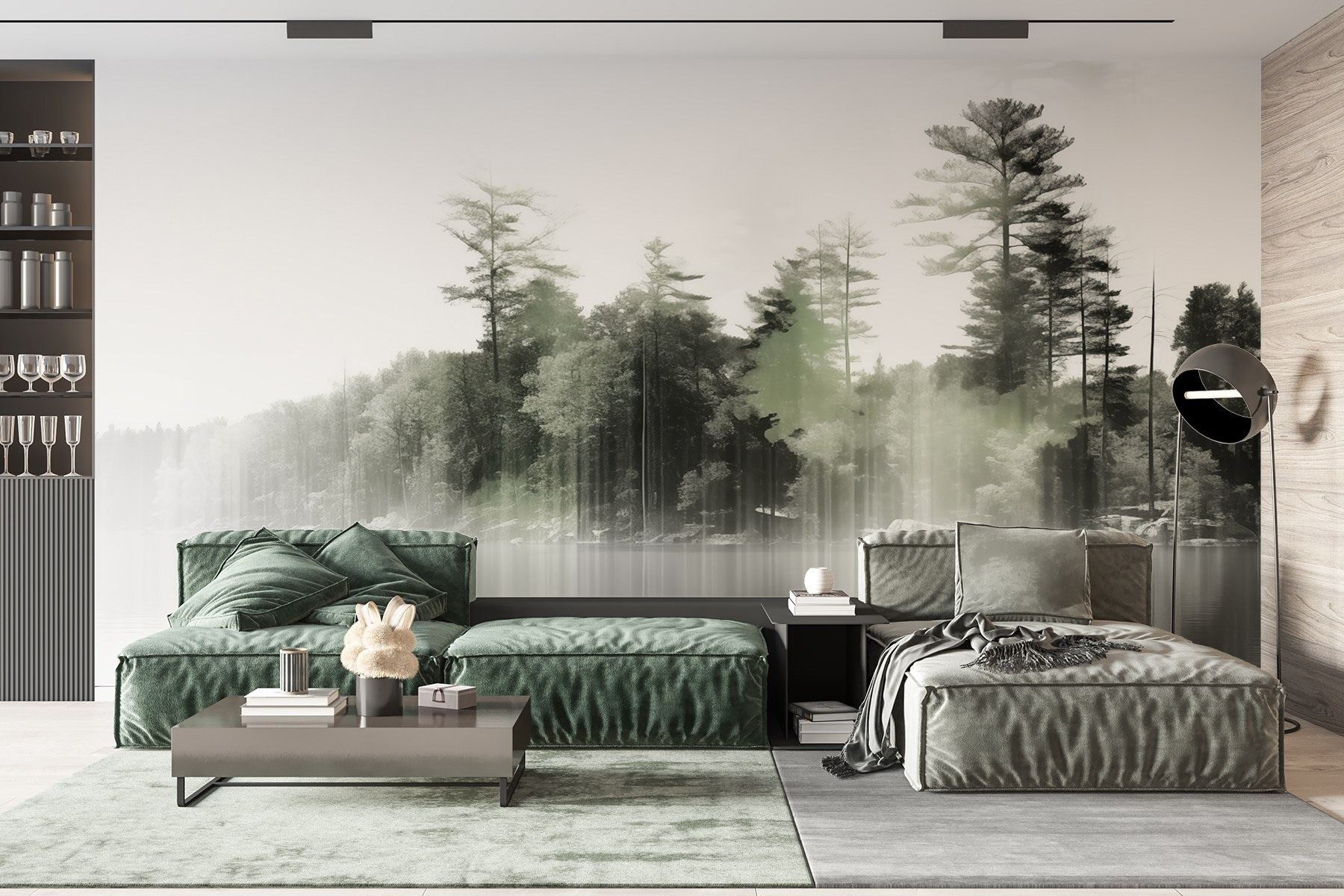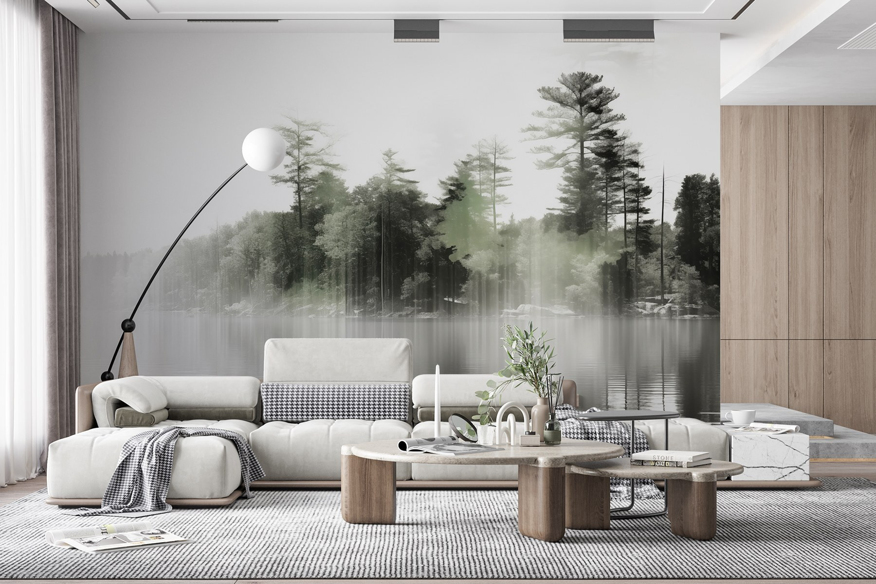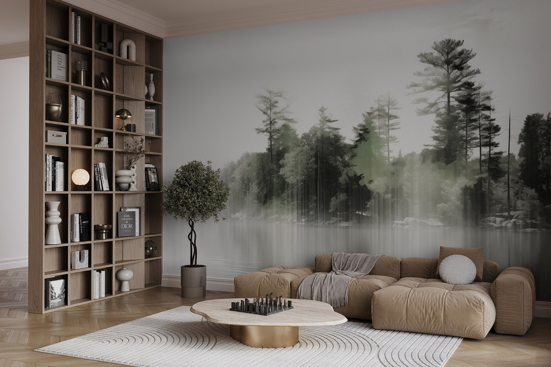 Transformarea unui perete cu o astfel de pictură murală poate fi ca și cum ați păși într-o retragere liniștită. Imaginați-vă șoaptele moi ale ceții acoperind apele senine, încadrate de copaci înalți care stau de pază. Aceasta invită la calm, aproape ca o duminică dimineața leneșă petrecută sorbind cafea în timp ce priviți natura trezindu-se. Pe măsură ce lumina filtrează, există o calitate eterică care face din fiecare privire o mică evadare. Este perfect pentru a crea un colț de lectură confortabil sau doar un loc în care să vă opriți și să reflectați. Agățați-o și lăsați frumusețea eleganței liniștite a naturii să vă învăluie spațiul, stârnind conversații și visări cu ochii deschiși deopotrivă.