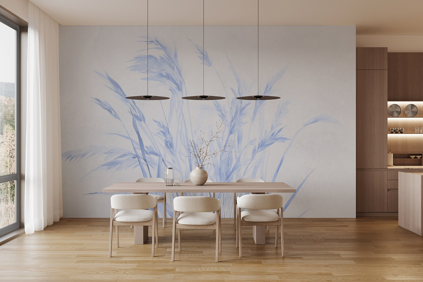 Imaginați-vă că pășiți într-o lume senină, în care o briză blândă șoptește printre firele moi de iarbă – această pictură murală aduce această scenă de vis direct pe peretele dvs. Nuanțele reci de albastru creează o atmosferă calmă, făcând ca orice spațiu să se simtă mai liniștit. Imaginează-ți cum te relaxezi după o zi lungă, absorbit de imaginile liniștitoare, ca și cum ai lenevi pe o pajiște cu iarbă, doar tu și cartea ta preferată. Este perfect pentru camerele de zi sau pentru colțurile confortabile de lectură. Această pictură murală nu îmbracă doar pereții, ci insuflă viață în casa dvs., invitând la căldură și relaxare.