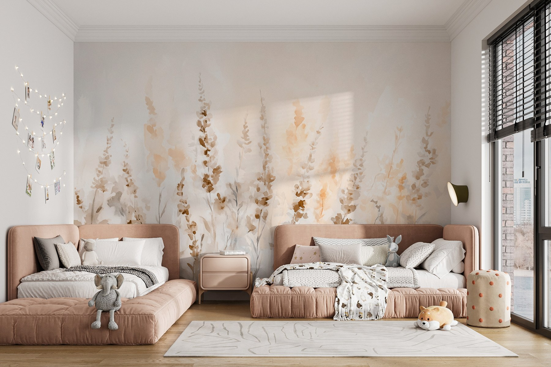 Transformați-vă spațiul cu această pictură murală încântătoare cu flori care dansează într-un câmp moale, luminat de soare. Este ca și cum ai aduce o șoaptă blândă a naturii chiar în camera ta de zi, creând o ambianță primitoare, confortabilă și caldă. Imaginați-vă sorbindu-vă cafeaua de dimineață, înconjurat de aceste flori delicate care vă amintesc de zilele leneșe de vară și de picnicurile pe iarbă. Stilul acuarelă adaugă o notă de vis – perfect pentru cei care apreciază un amestec subtil de artă și natură. Această pictură murală nu decorează doar un perete; atinge inima, inspirând calm și mulțumire de fiecare dată când aruncați o privire în direcția ei. Vorbim despre un vibe!