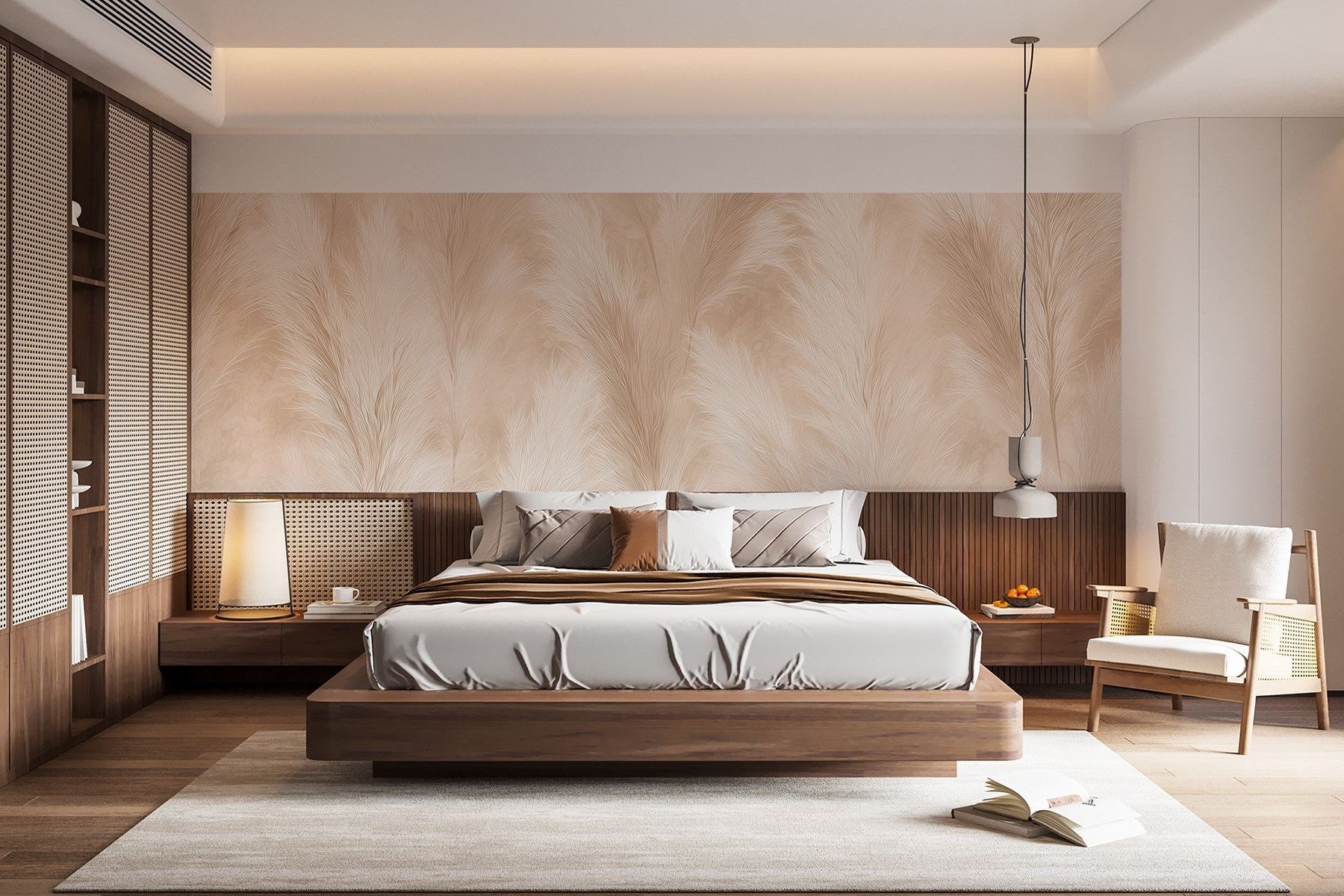 Imaginați-vă că vă relaxați cu o carte bună, înconjurați de aceste tonuri blânde, naturale, care calmează instantaneu mintea. Este genul de decor care stârnește conversații – invitații se vor trezi probabil atingând pereții, pierzându-se în vibrațiile liniștite. Fie că este vorba de camera de zi sau de un colțișor confortabil, această pictură murală poate transforma ceva obișnuit în ceva extraordinar. În plus, se potrivește de minune cu verdele. Gândiți-vă doar la acest amestec de texturi! Lăsați acest mural să fie o pânză pentru acele mici momente de bucurie.