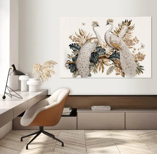 • -40% Vânzare! Reduceri! Tablou pe pânză Tablou pe pânză Păuni eleganți în mijlocul frunzișului luxuriant (SKU: s33942)