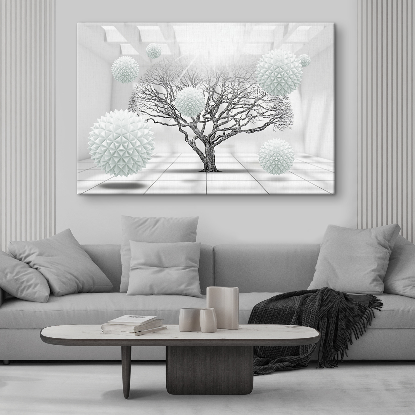 Imaginează-ți un copac, îndrăzneț și frumos, care ține tribunalul în camera ta. Acum adăugați niște sfere albe capricioase care plutesc ca și cum ar avea tot timpul din lume. Acest print pe pânză nu este doar artă; este ca o invitație de a visa puțin. Vibrațiile monocrome? Eleganță pură. Perfectă pentru iubitorii de alb-negru care apreciază o notă de natură amestecată cu un strop de excentricitate. Este genul de piesă care te face să te întrebi – de unde vine briza? Agățați-o, lăsați conversațiile să curgă – toată lumea va fi intrigată.