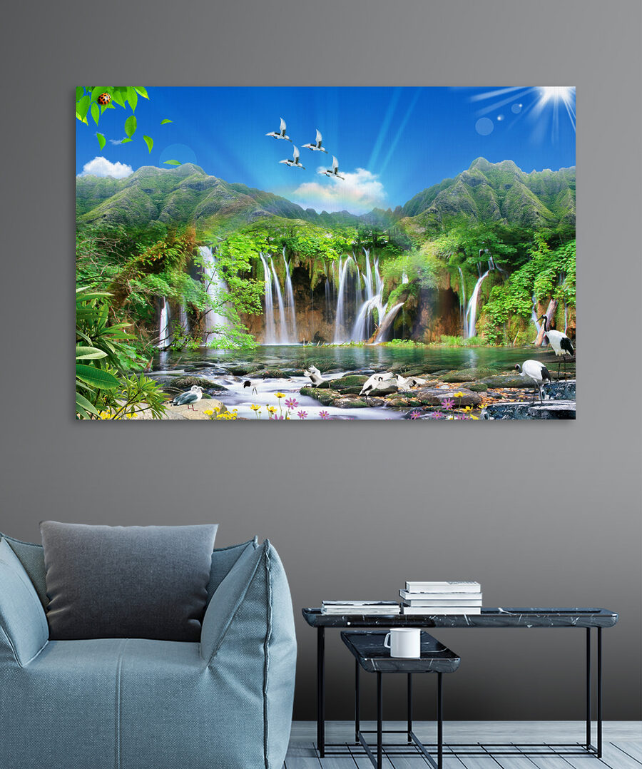 Imaginați-vă acest lucru: ați avut o zi lungă și intrați în camera dvs. pentru a vedea această imprimare uimitoare pe pânză, “Serene Waterfalls and Soaring Birds”. Este ca și cum ai păși într-un paradis secret, chiar pe peretele tău. Vegetația luxuriantă, cascadele blânde care coboară în cascadă – este suficient să te facă să simți o briză răcoroasă doar privind-o. Și păsările alea în zbor? Adaugă o atmosferă atât de liniștită. Perfectă pentru sufragerie sau dormitor, această pictură murală reușește să facă orice spațiu să se simtă ca un refugiu liniștit. Nu este doar decor; este o mică felie de natură de care te poți bucura în fiecare zi. 🌿