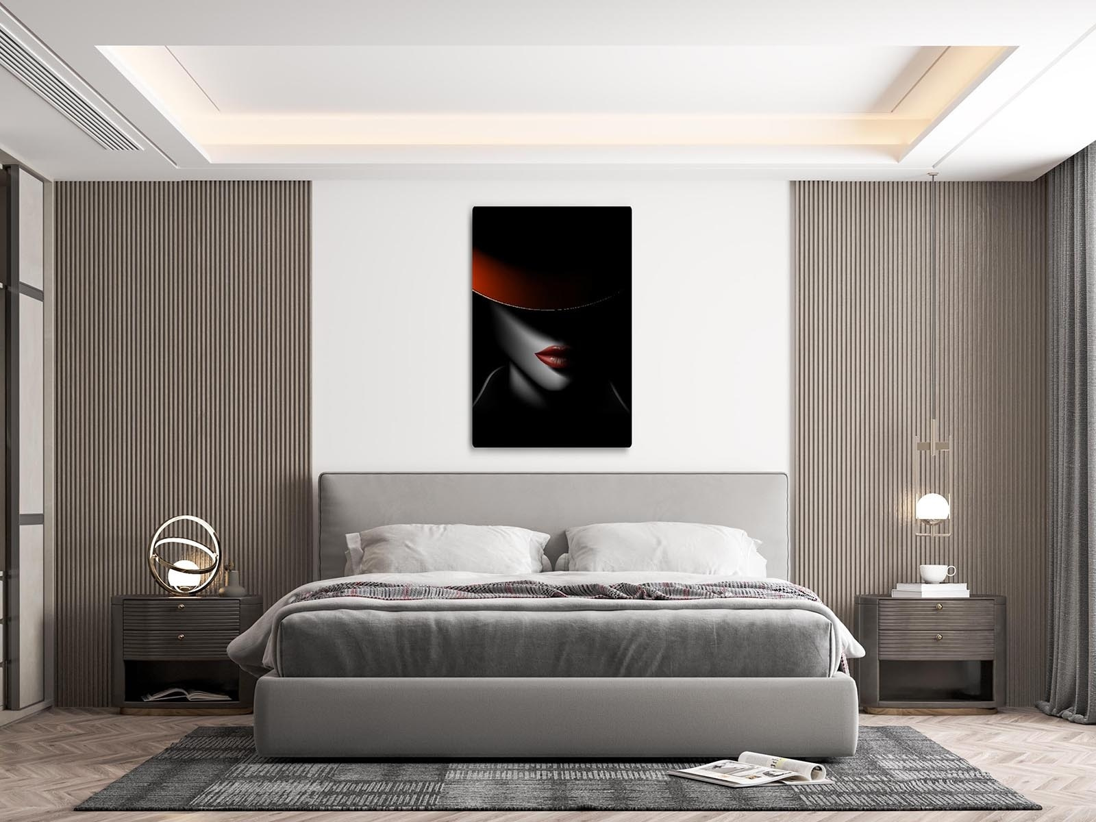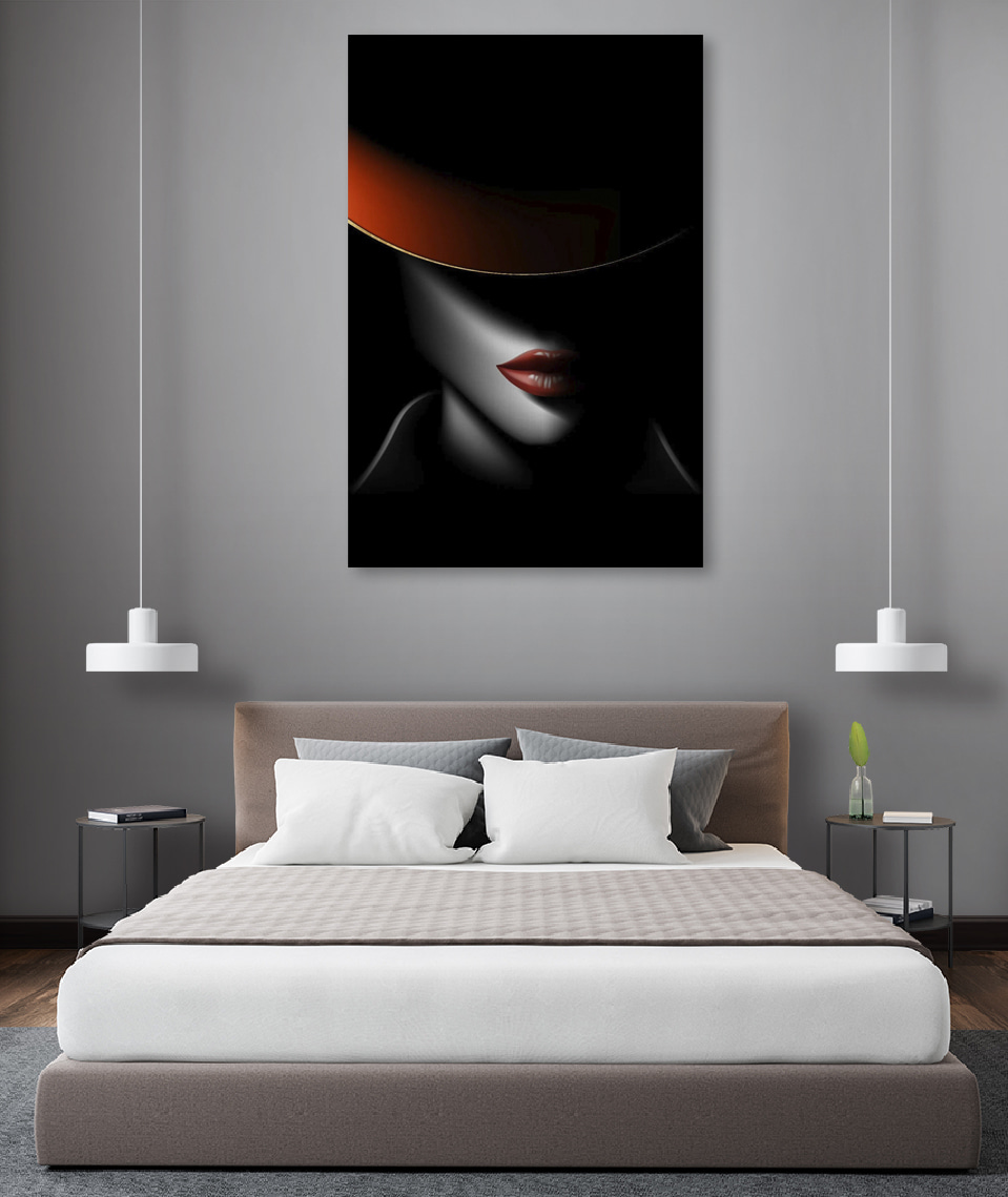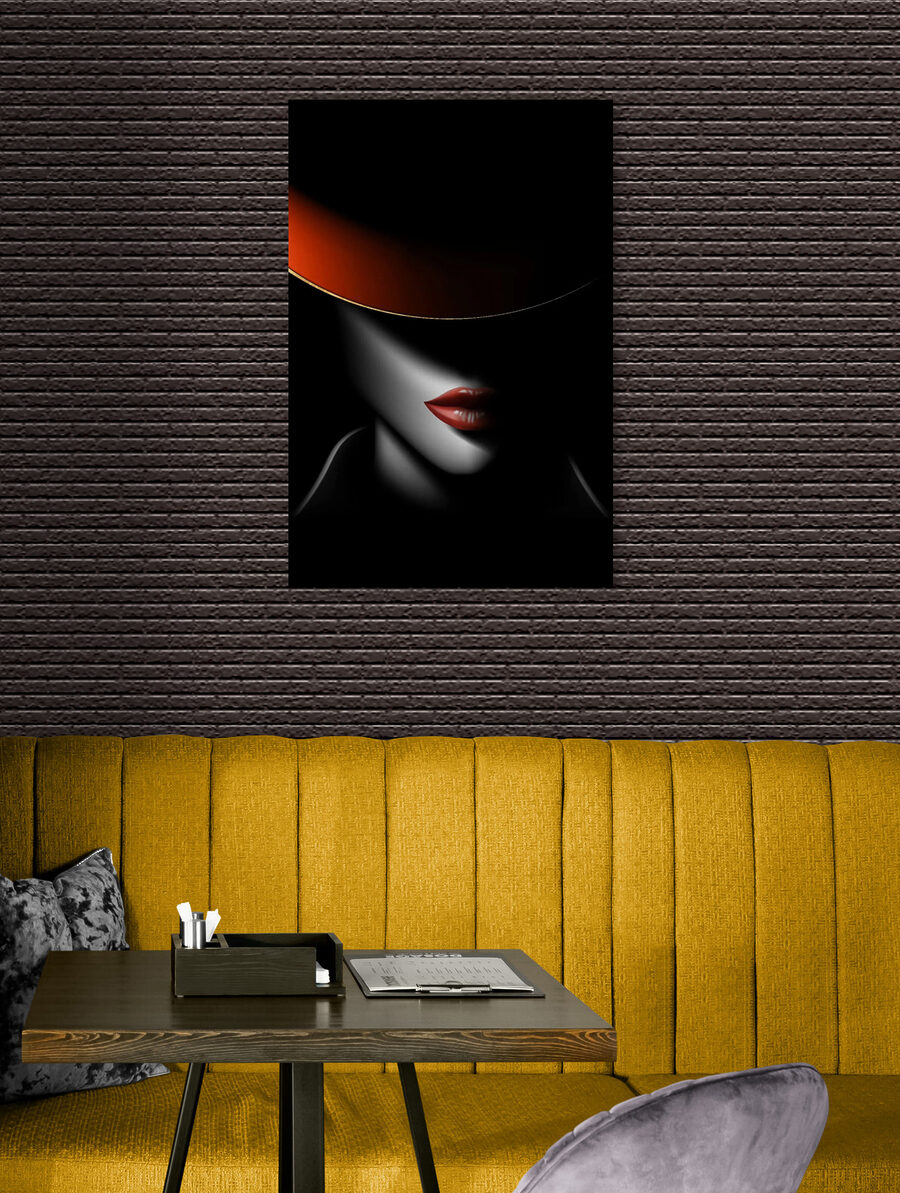 “Tablouri Mysterious allure under a shadowed hat” este ca un magnet pentru intrigă. Imaginează-ți asta: o față pe jumătate ascunsă în umbră, cu buzele pictate într-un roșu viu, luxuriant, care trage cu ochiul de sub o pălărie largă, întunecată. Este ca o șoaptă a unui secret pe care nu prea îl poți auzi, dar pe care vrei cu disperare să îl afli. Perfectă pentru un dormitor sau un spațiu de locuit, această piesă adaugă o notă de mister și eleganță. Serios, are un aer de film noir, ca și cum ai păși într-o scenă veche de film alb-negru. Puțină dramă, multă alură – este un starter de conversație și, crede-mă, toată lumea va dori să știe povestea din spatele acestor buze enigmatice.